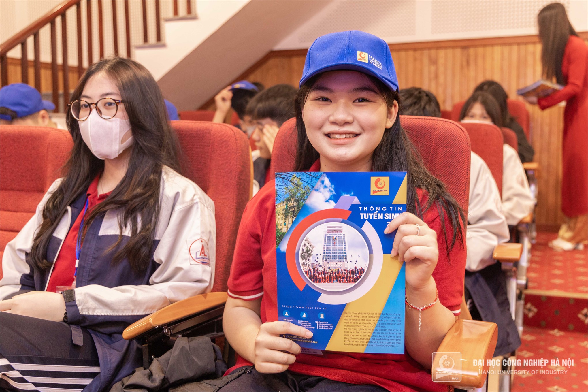 Bên cạnh đó, TS.Nguyễn Thị Hồng Vân, giảng viên HaUI đã tư vấn về kỹ năng sống, kỹ năng chọn nghề cho các em học sinh. Để xác định được nghề và trường phù hợp, TS.Nguyễn Thị Hồng Vân cho rằng, các em học sinh cần tìm hiểu bản thân, xác định ngành nghề phù hợp, tìm hiểu ngành nghề, xác định năng lực học tập, tìm hiểu hình thức tuyển sinh, chọn trường, chọn ngành phù hợp. Cô nhắn nhủ: “Điều tuyệt với nằm ở nơi chính bạn”. Chính vì vậy, các bạn hãy xác lập mục tiêu, niềm tin, tập trung chinh phục kỳ thi sắp tới.