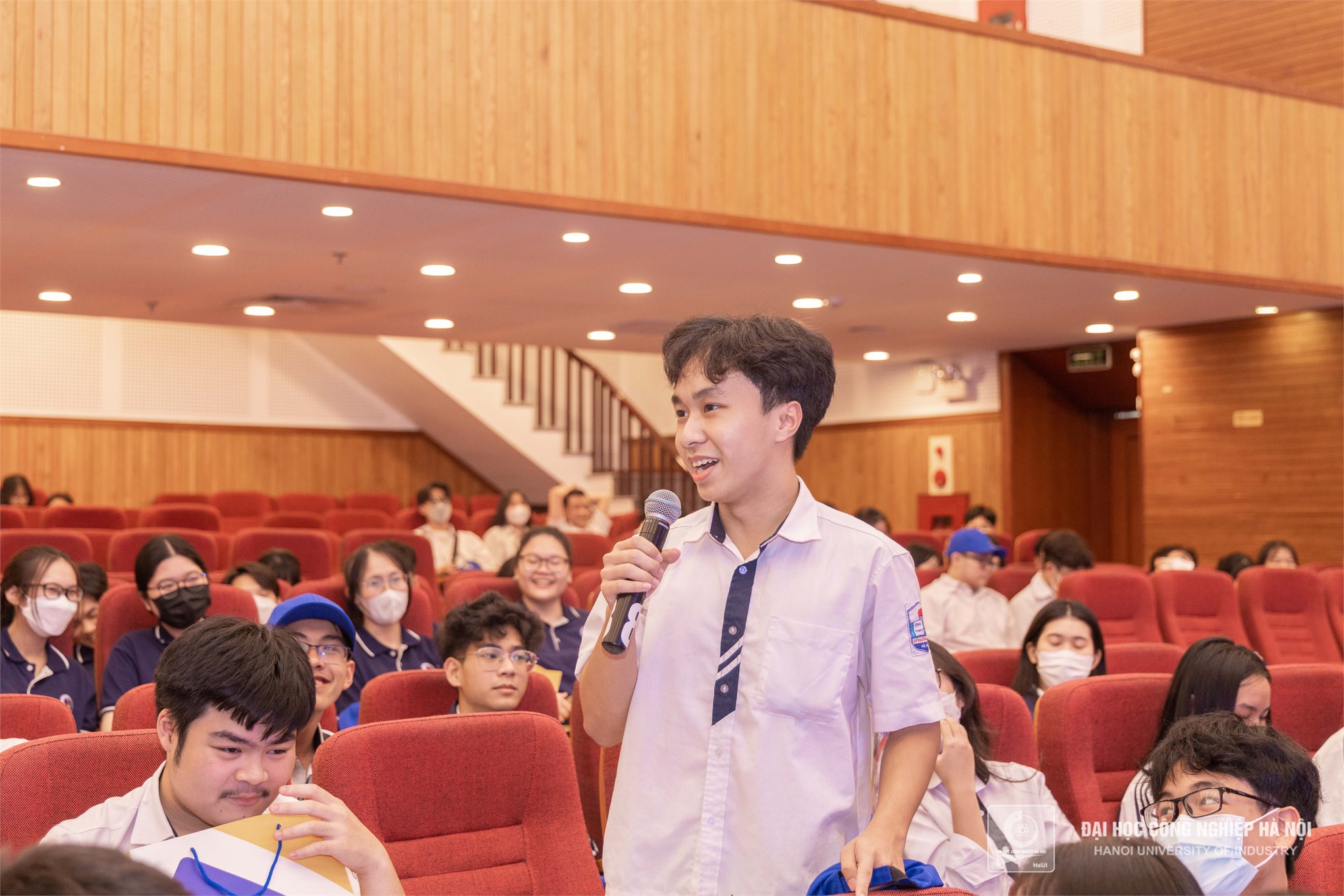 PGS.TS.Phạm Văn Bổng nhấn mạnh: Trường Đại học Công nghiệp Hà Nội đào tạo đa ngành, đa lĩnh vực, nhiều loại hình, nhiều cấp trình độ; cung cấp nguồn nhân lực chất lượng cao cho thị trường lao động trong nước và nước ngoài. Nhà trường đã triển khai hợp tác với nhiều cơ sở giáo dục, các tổ chức, các viện nghiên cứu uy tín từ các quốc gia có nền giáo dục hàng đầu trên Thế giới và có mạng lưới kết nối doanh nghiệp đa dạng, rộng lớn. Đặc biệt, trường luôn nằm trong top các trường đại học dẫn đầu về số lượng thí sinh đăng ký xét tuyển vào trường. Thầy Phó Hiệu trưởng hy vọng rằng, với các thông tin được chia sẻ trong chương trình, các em học sinh sẽ xác định đúng năng lực, sở trường, sở thích và điều kiện thực tế của bản thân. Từ đó định hướng tốt nhất cho kỳ thi quan trọng sắp tới và có lựa chọn ngành học phù hợp nhất, định hướng cho nghề nghiệp sau này.