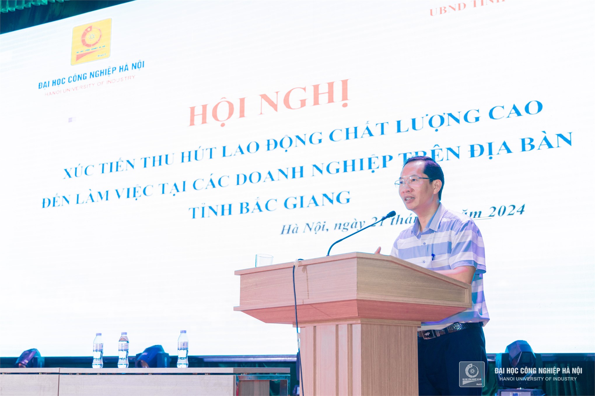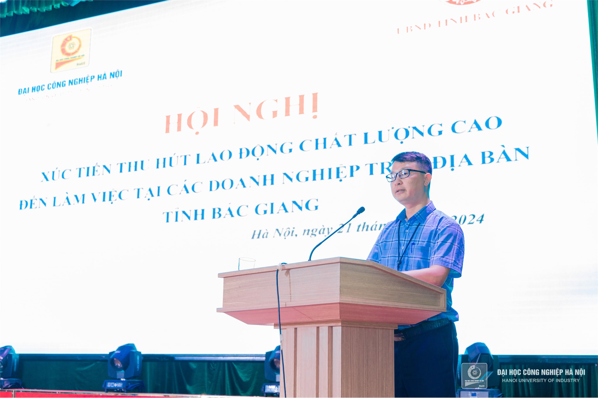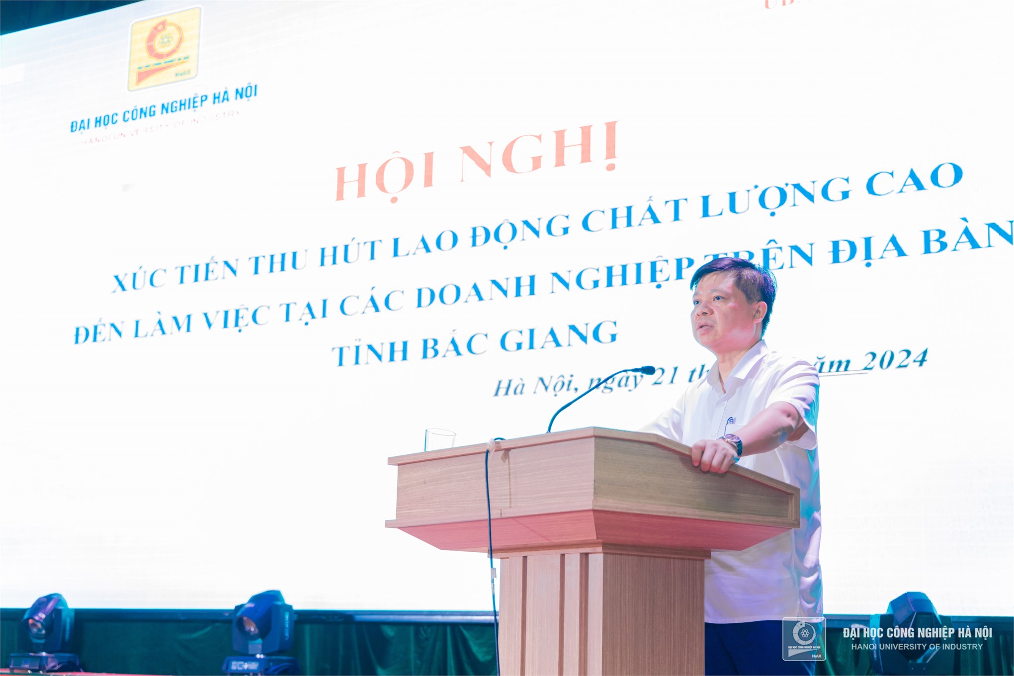 Phát biểu tại Hội nghị xúc tiến thu hút lao động chất lượng cao đến làm việc tại các doanh nghiệp trên địa bàn tỉnh Bắc Giang vào ngày 21/5, PGS.TS. Phạm Văn Đông – Phó Hiệu trưởng Đại học Công nghiệp Hà Nội (HaUI) cho biết: HaUI đang có mối quan hệ hợp tác với hàng nghìn tổ chức, doanh nghiệp trong và ngoài nước. Đặc biệt, trong nhiều năm qua, Đại học Công nghiệp Hà Nội đã có hợp tác chặt chẽ và gặt hái được nhiều kết quả tốt đẹp với các doanh nghiệp tại tỉnh Bắc Giang. Các doanh nghiệp đã hỗ trợ nhà trường trong việc thiết kế chương trình đào tạo, đào tạo trước tuyển dụng, thực tập thực tế doanh nghiệp, hỗ trợ giải quyết việc làm sau khi tốt nghiệp cho sinh viên.