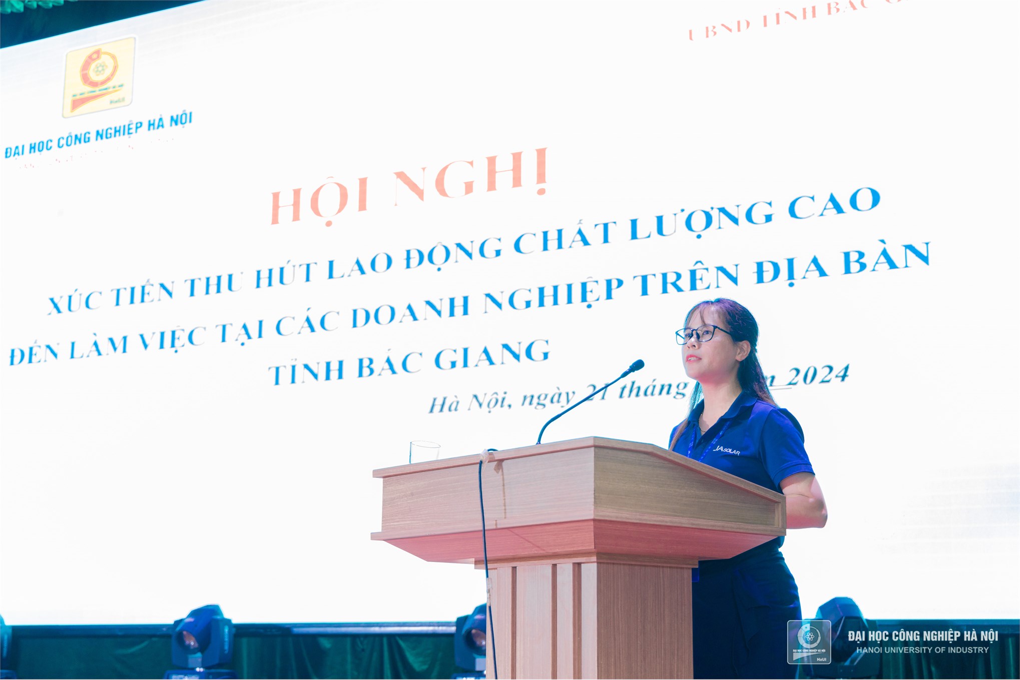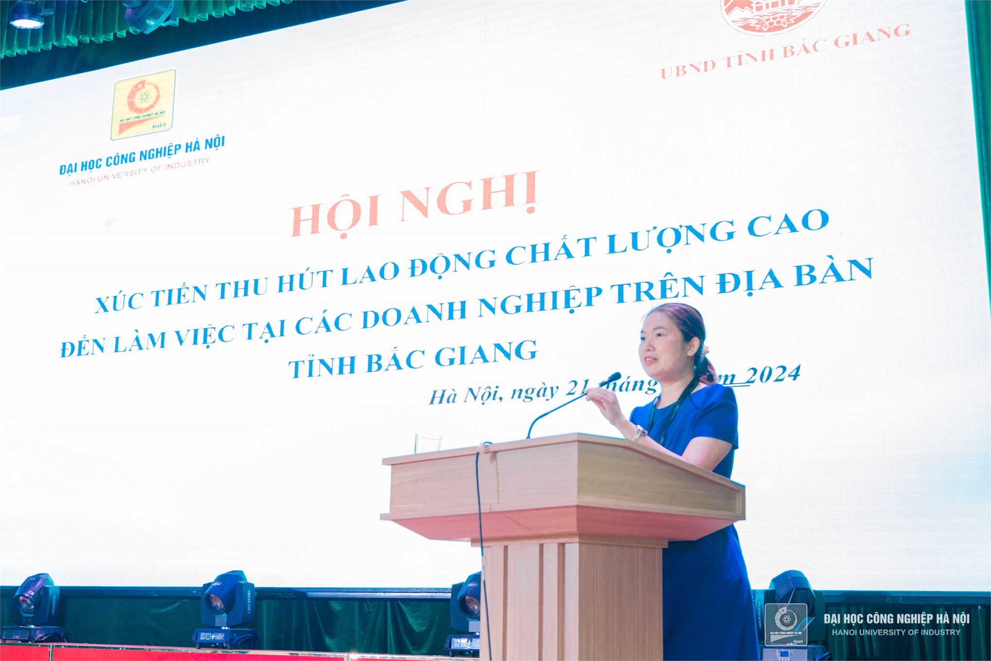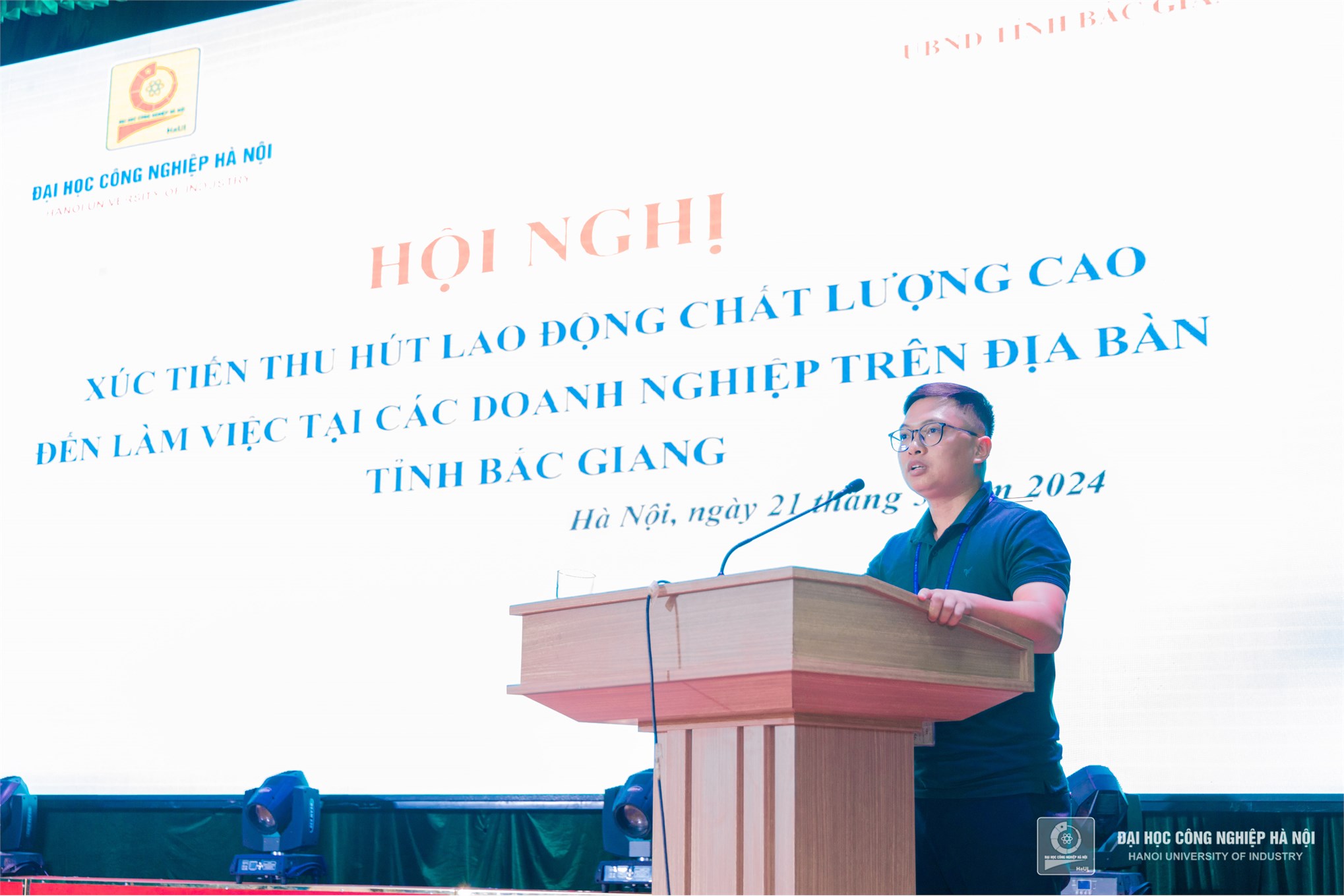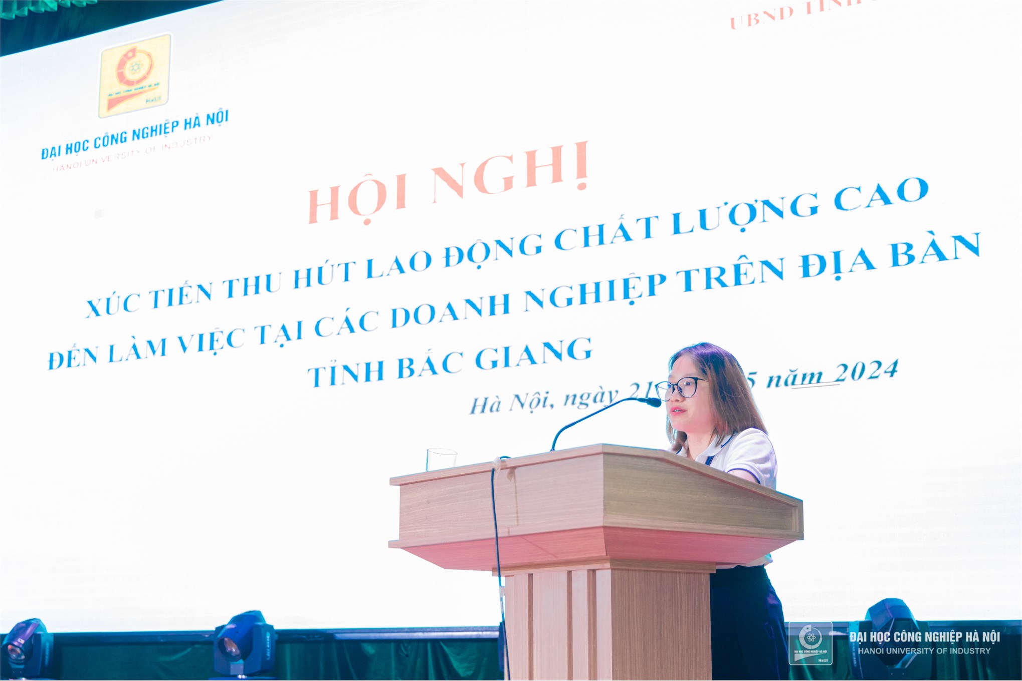 Phát biểu tại Hội nghị xúc tiến thu hút lao động chất lượng cao đến làm việc tại các doanh nghiệp trên địa bàn tỉnh Bắc Giang vào ngày 21/5, PGS.TS. Phạm Văn Đông – Phó Hiệu trưởng Đại học Công nghiệp Hà Nội (HaUI) cho biết: HaUI đang có mối quan hệ hợp tác với hàng nghìn tổ chức, doanh nghiệp trong và ngoài nước. Đặc biệt, trong nhiều năm qua, Đại học Công nghiệp Hà Nội đã có hợp tác chặt chẽ và gặt hái được nhiều kết quả tốt đẹp với các doanh nghiệp tại tỉnh Bắc Giang. Các doanh nghiệp đã hỗ trợ nhà trường trong việc thiết kế chương trình đào tạo, đào tạo trước tuyển dụng, thực tập thực tế doanh nghiệp, hỗ trợ giải quyết việc làm sau khi tốt nghiệp cho sinh viên.