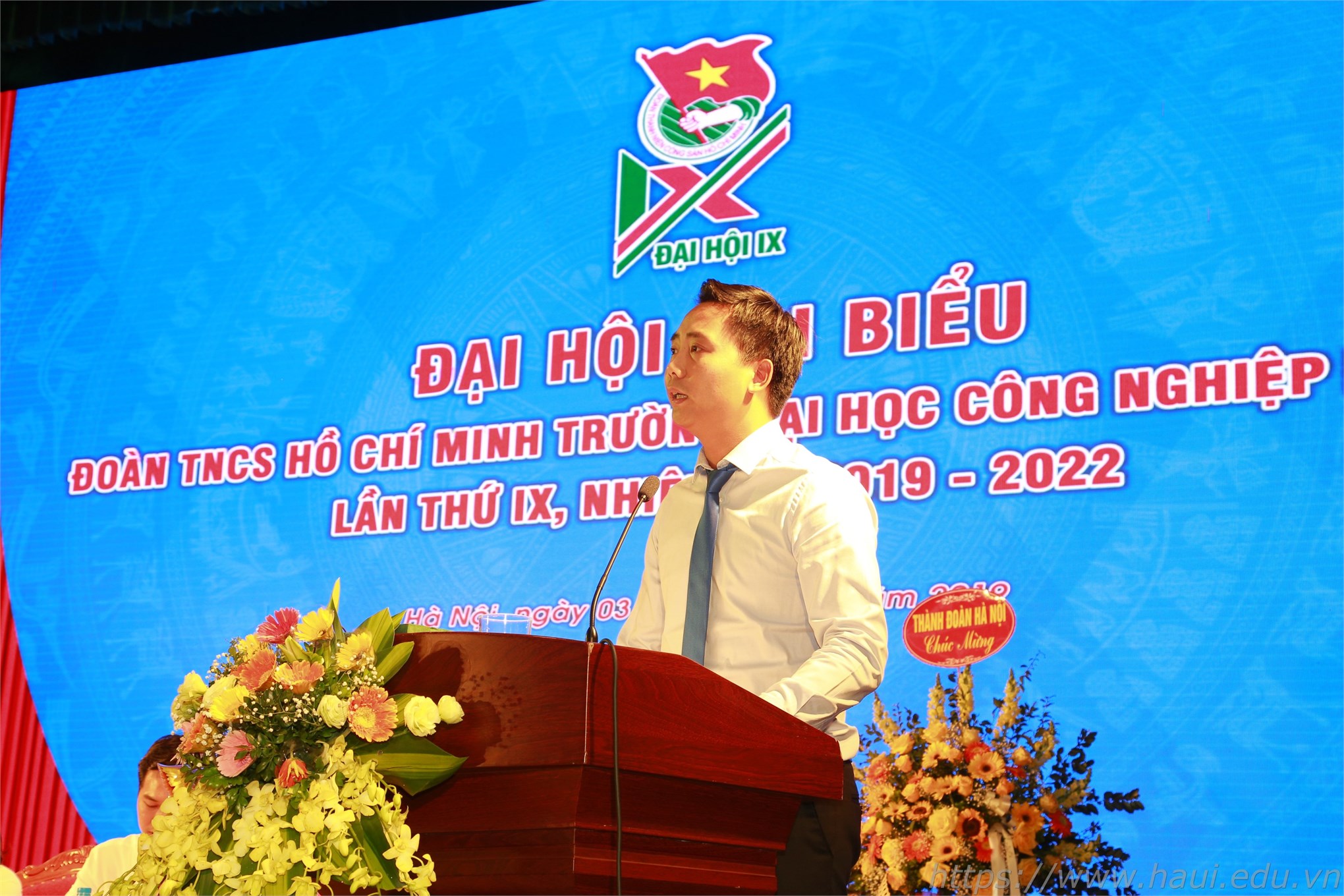 Đại hội được nghe ý kiến phát biểu chỉ đạo của đồng chí Nguyễn Đức Tiến - Phó bí thư Thành Đoàn, Chủ tịch Hội Liên hiệp Thanh niên TP Hà Nội ghi nhận những kết quả đã đạt được trong nhiệm kỳ vừa qua. Đồng chí biểu dương và đánh giá cao những đóng góp quan trọng của tuổi trẻ trường ĐHCNHN đối với phong trào Thanh niên Thủ đô; đồng chí mong muốn đoàn viên thanh niên ĐHCNHN đoàn kết, sáng tạo, có nhiều đổi mới, hoàn thành nhiệm vụ chính trị của tuổi trẻ trong thời kỳ mới, thời kỳ công nghiệp hóa, hiện đại hóa đất nước và hội nhập quốc tế.