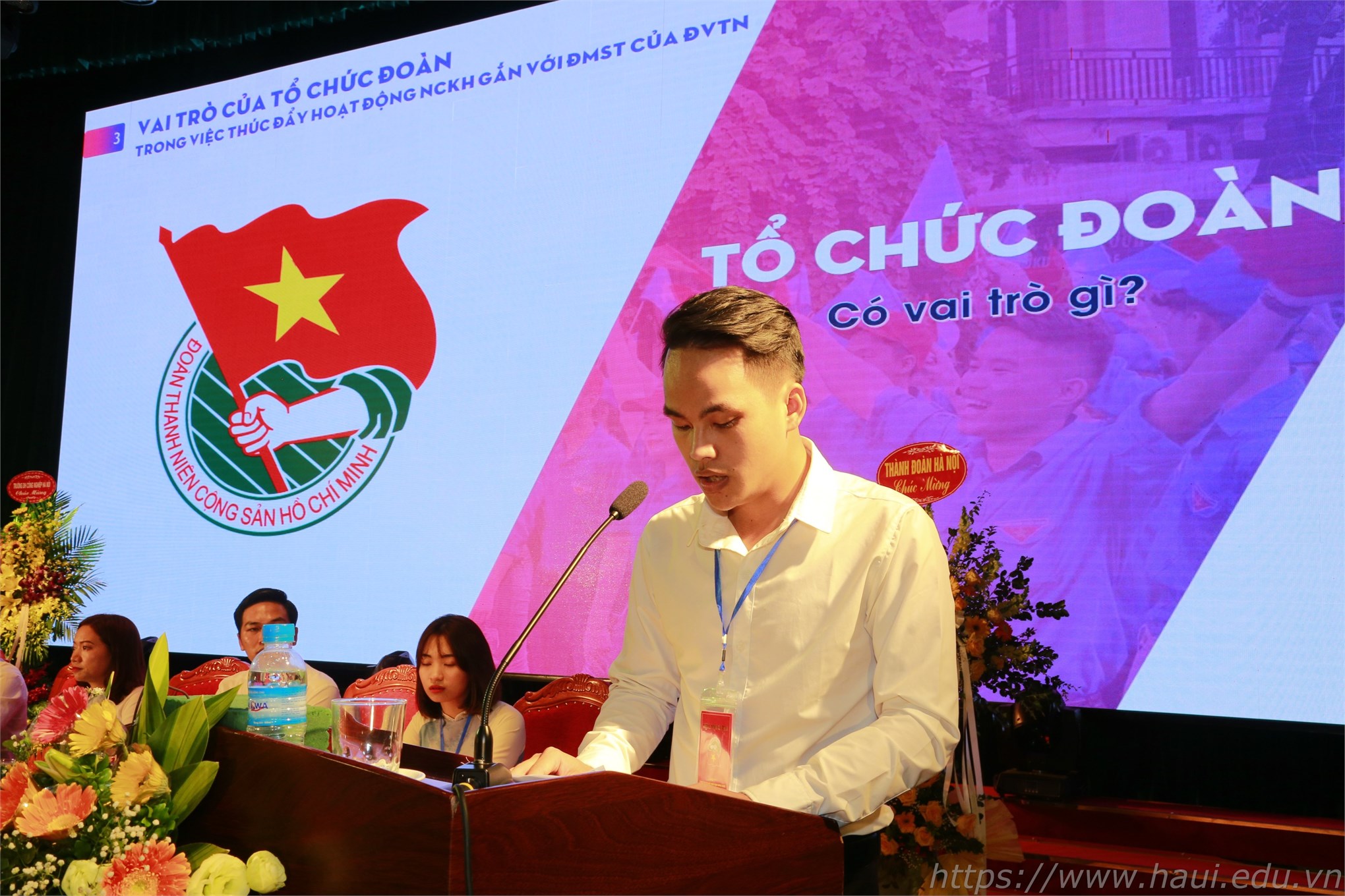 Đại hội đã dành thời gian lắng nghe những tham luận, thảo luận, đóng góp ý kiến vào các văn kiện trình bày tại đại hội: Đồng chí Lý Xuân Thanh với tham luận “Vai trò của tổ chức Đoàn trong việc đẩy mạnh phong trào NCKH gắn với đổi mới sáng tạo trong cuộc cách mạng công nghiệp 4.0” và đồng chí Đỗ Văn Tùng - Liên chi đoàn khoa Du lịch với nội dung “Giáo dục, nắm bắt, định hướng tư tưởng đoàn viên thông qua website, mạng xã hội và phát huy sức mạnh ĐVTN trong việc phản bác các luận điệu xuyên tạc của các thế lực thù địch”.