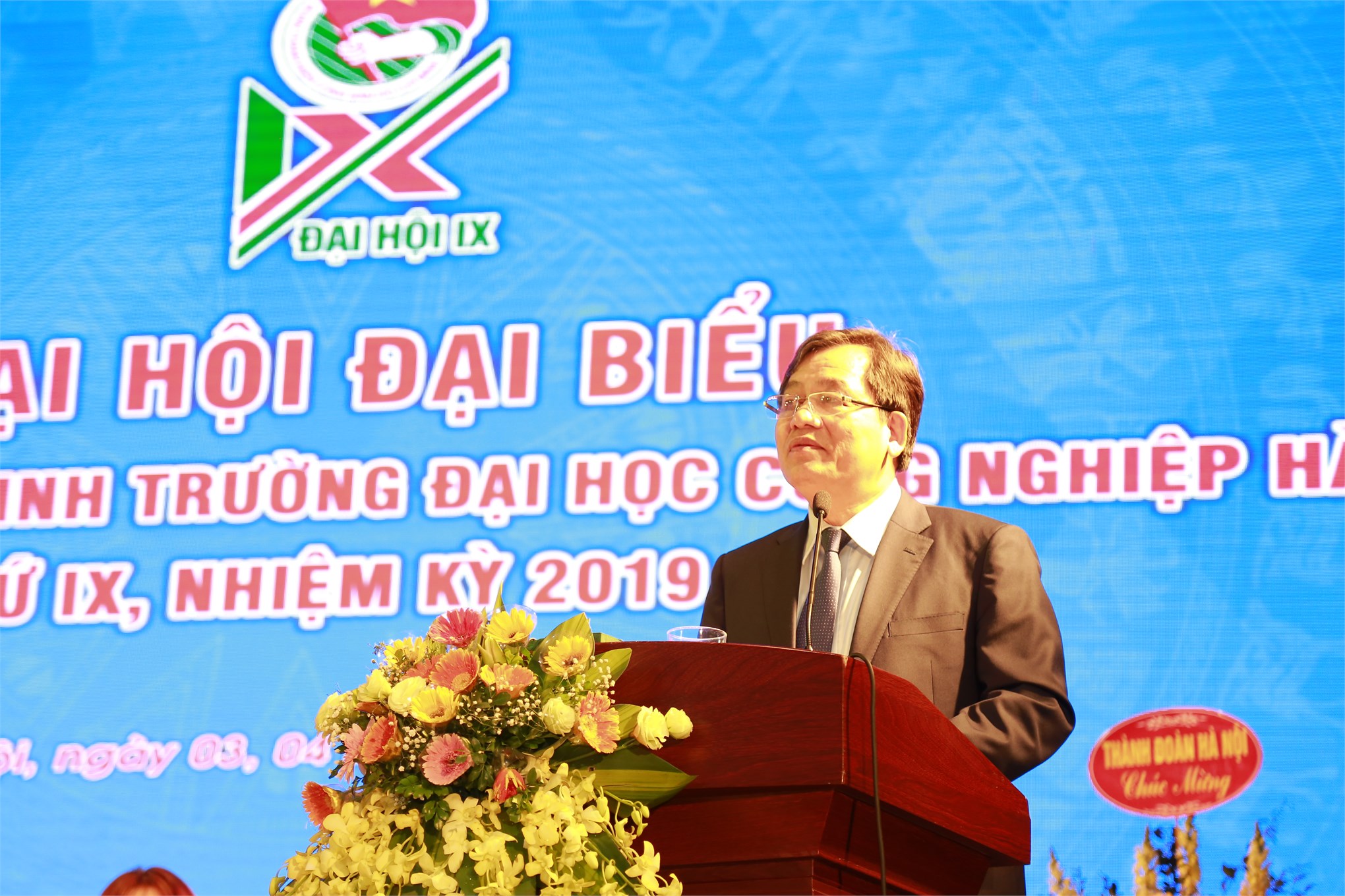 Tại đại hội, NGND. PGS. TS.Trần Đức Quý - Bí thư Đảng ủy, Hiệu trưởng Nhà trường ghi nhận và đánh giá cao nỗ lực của toàn thể cán bộ đoàn, đoàn viên, sinh viên các cấp đối với phong trào Đoàn, phong trào Thanh niên nhà trường; nhiệm kỳ 2017 - 2019 của Đoàn Thanh niên cũng đánh dấu một bước trưởng thành mới của tuổi trẻ thông qua rất nhiều công trình, phần việc ý nghĩa, được cụ thể bằng những con số ấn tượng. Bên cạnh đó, NGND. PGS. TS. Trần Đức Quý cũng nhấn mạnh: Với lịch sử 121 năm bề dày truyền thống, bước vào năm học mới cũng chính là lúc trường ĐHCNHN đang ở giai đoạn phát triển đỉnh cao hòa nhập vào dòng chảy của thời đại, của cuộc CMCN 4.0. Đồng nghĩa với nó, tuổi trẻ ĐHCNHN phải chung tay gánh vác, hoàn thành trọng trách nặng nề mà nhà trường tin tưởng giao cho. Cần phải có sự đổi mới trong nội dung, phương thức hoạt động Đoàn để gắn với thực tiễn, có hiệu quả sâu sắc, chân thực. Các hoạt động thi đua, các phong trào bề nổi cũng phải thực hiện một cách sáng tạo, thu hút và truyền cảm hứng cho đoàn viên, thanh niên. Cần khích lệ, động viên kịp thời nhằm phát huy vai trò xung kích đi đầu trong thanh niên tuổi trẻ, phấn đấu hoàn thành xuất sắc nhiệm vụ rèn luyện, học tập, công tác, góp phần xây dựng ĐHCNHN không ngừng lớn mạnh và sớm trở thành đại học trọng điểm của khu vực, đóng góp tích cực vào công tác Đoàn và phong trào thanh niên của thủ đô và cả nước.