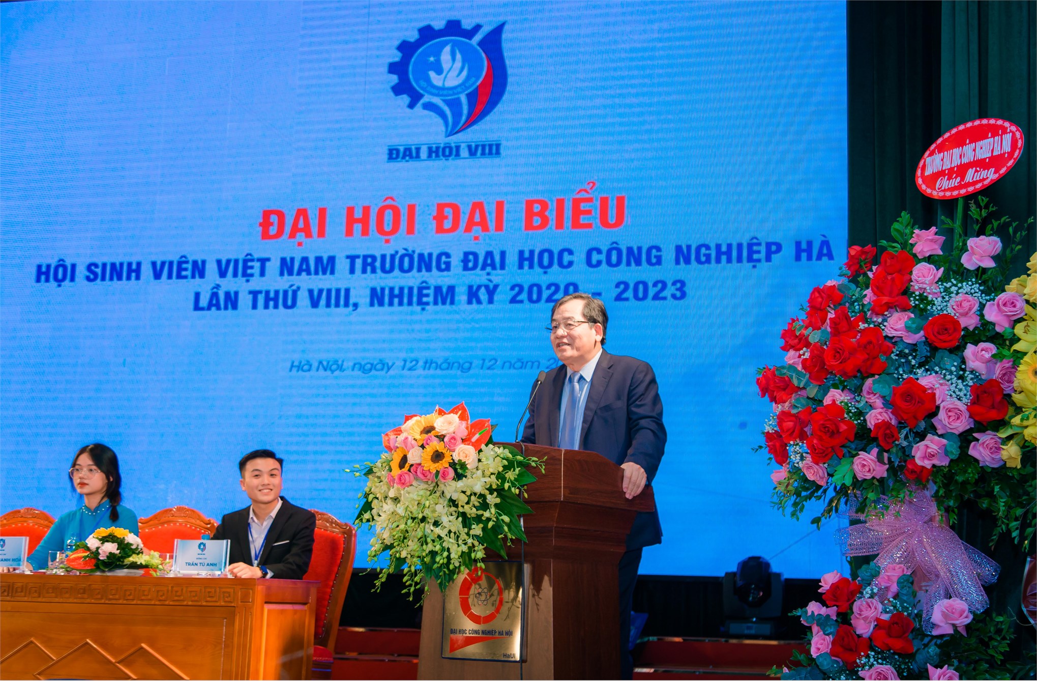 Thay mặt lãnh đạo trường, PGS.TS.Trần Đức Quý - Bí thư Đảng uỷ, Hiệu trưởng nhà trường đã có những chia sẻ với 222 đại biểu ưu tú tham dự đại hội về định hướng của nhà trường đối với việc phát triển năng lực và kỹ năng mềm cho sinh viên. Hiệu trưởng đánh giá cao tầm quan trọng của Hội Sinh viên đối với hoạt động phong trào, công tác chính trị, tư tưởng và đào tạo của nhà trường. Hiệu trưởng hi vọng trong nhiệm kỳ 2020 - 2023, Hội Sinh viên sẽ có thêm nhiều sáng kiến, nhiều chương trình hành động hiệu quả, phát huy truyền thống, xây dựng hình ảnh các thế hệ sinh viên ĐHCNHN năng động, tự tin, tài năng; tiếp tục phát huy ưu điểm, đổi mới phương thức, nâng cao chất lượng và hiệu quả công tác Hội và phong trào sinh viên nhiệm kỳ 2020 - 2023.