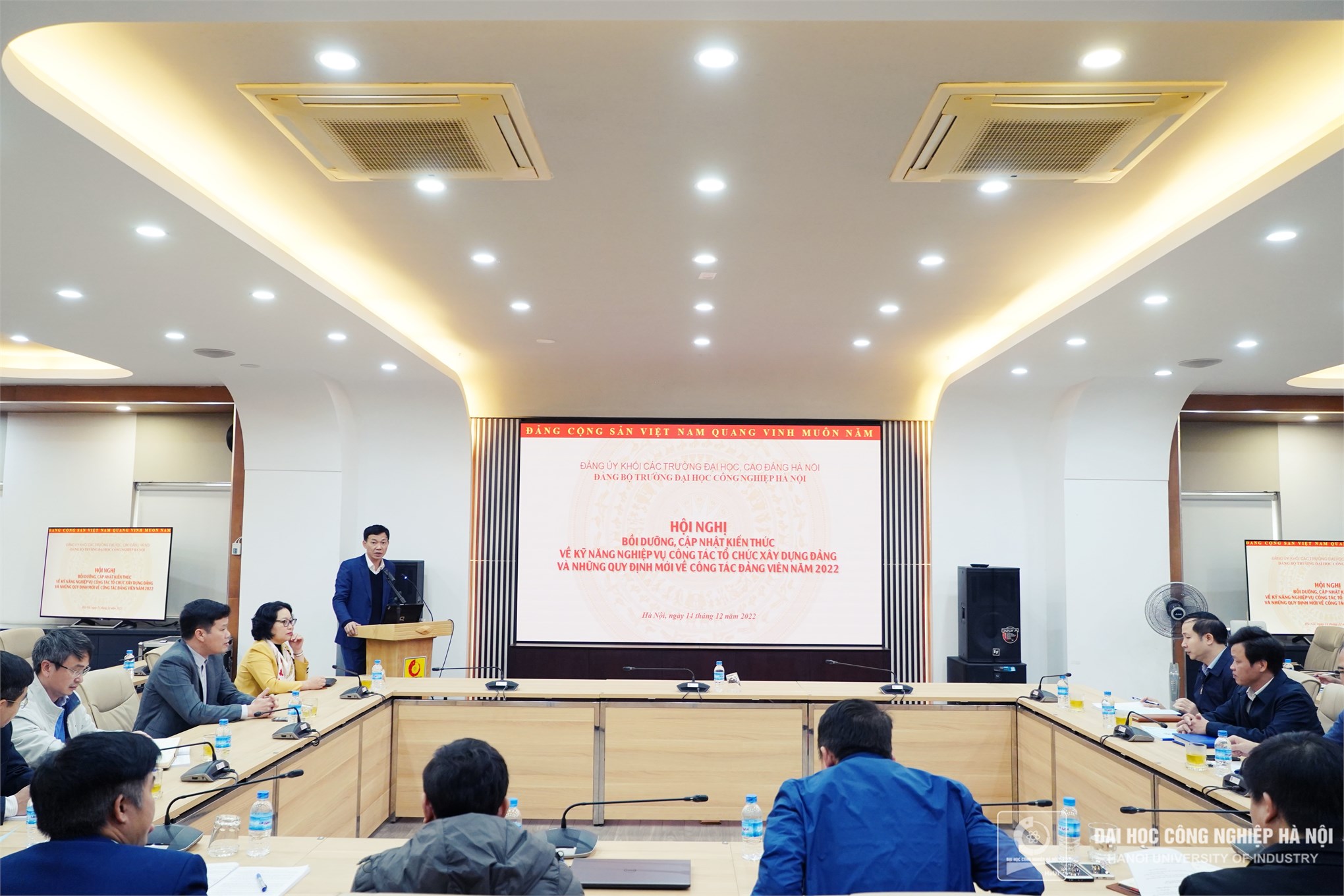 Sáng ngày 17/12/2022, Đảng bộ Trường Đại học Công nghiệp Hà Nội tổ chức Hội nghị tập huấn cập nhật những quy định mới về nghiệp vụ công tác tổ chức xây dựng Đảng. TS.Kiều Xuân Thực - Ủy viên Thường vụ, Phó Hiệu trưởng nhà trường dự và chỉ đạo tập huấn.