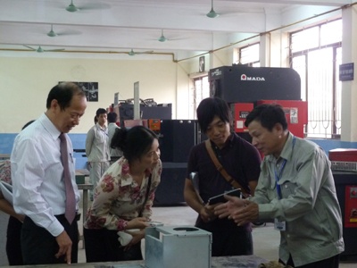 9h15, đoàn thăm các phòng máy của trung tâm Việt Nhật, tiếp tục phần thảo luận xung quanh đến vấn đề hợp tác giữa nhà trường và tổ chức JICA cũng như các tổ chức khác. Thông qua đó, lãnh đạo Trường Đại học Công nghiệp Hà Nội một lần nữa khẳng định, dự án JICA-HaUI giai đoạn 1 và giai đoạn 2 đã đem lại kết quả thiết thực, đặc biệt trong việc đào tạo giảng viên và sinh viên chất lượng cao khối kỹ thuật.