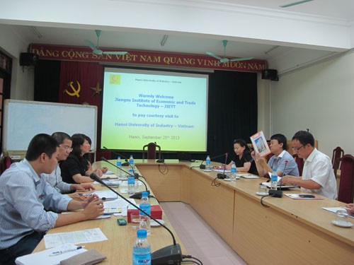 Nhằm tăng cường giao lưu hợp tác trong lĩnh vực giáo dục, chiều 24/9/2013 đoàn cán bộ Học viện Giáo dục Kỹ thuật nghề nghiệp Kinh tế - Thương mại Giang Tô đến thăm và làm việc với trường.