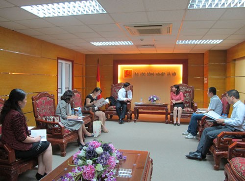 Tại buổi làm việc, Phó Hiệu trưởng Bùi Thị Ngân đã đề xuất cơ hội hợp tác giữa 2 trường trong các chương trình: trao đổi sinh viên, giảng viên, cấp học bổng, tuyển sinh và chương trình học liên thông lên Đại học. Đại diện Lãnh đạo Học viện Hạc Châu đã thống nhất các hình thức hợp tác mà trường Đại học Công nghiệp Hà Nội đề xuất.