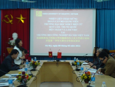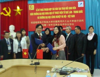 Thông qua quá trình làm việc, Hiệu trưởng Nhà trường đã tiến hành đã ký kết thỏa thuận hợp tác đào tạo trao đổi sinh viên năm thứ 3 chuyên ngành tiếng Anh với trường Đại học Khoa học kỹ thuật Điện tử Quế Lâm. Bản thỏa thuận này dựa trên văn bản hợp tác đào tạo giữa 2 trường ký năm 2006. Đây là cơ hội để sinh viên 2 trường giao lưu, học hỏi nhau.