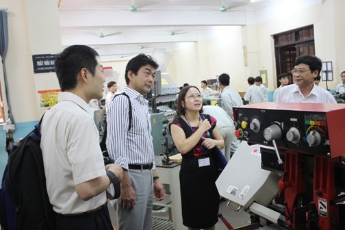 Cuối buổi làm việc, đoàn cán bộ Văn phòng JICA Việt Nam đã thăm quan Trung tâm Việt Nhật để tìm hiểu về hỗ trợ kỹ thuật của JICA đối với nhà trường.