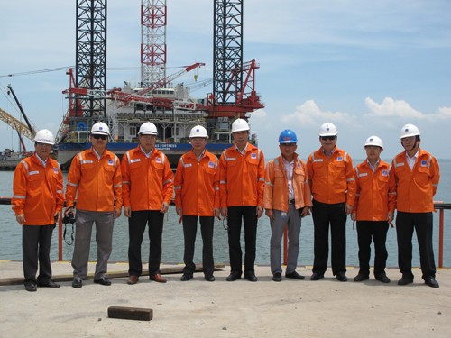 Đoàn công tác của nhà trường thăm giàn tự nâng ngoài biển