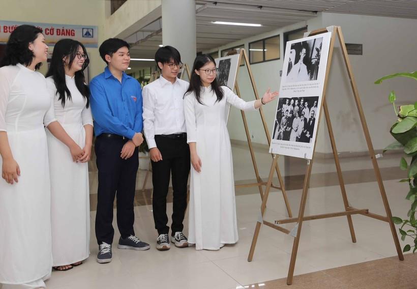 Học sinh Trường THPT chuyên Hà Nội - Amsterdam tìm hiểu về Chủ tịch Hồ Chí Minh. Ảnh: TG