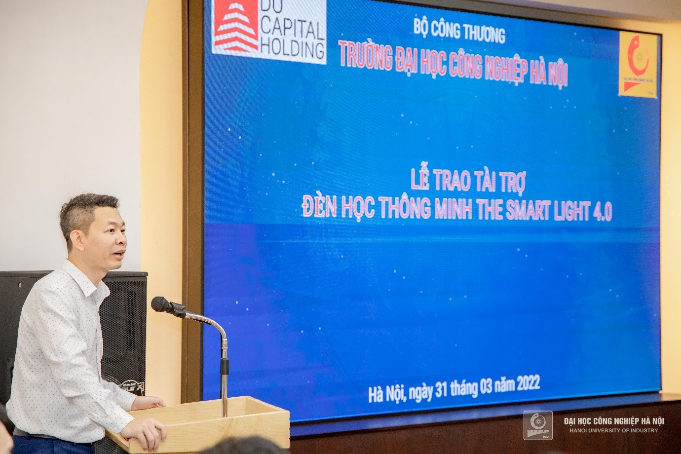 Phát biểu tại buổi trao tặng, ông Nguyễn Huy Du - đại diện DUCAPITAL Holding đánh giá cao về ý thức, sự chăm chỉ, ham học hỏi và không ngại khó khăn của sinh viên Đại học Công nghiệp Hà Nội. Ông Nguyễn Huy Du hi vọng, những chiếc đèn học thông minh mà Công ty trao tặng sẽ phục vụ việc học của các em tốt hơn, sẽ là người bạn thân thiết, truyền cảm hứng và năng lượng học tập cho các em trong suốt quãng đời sinh viên của mình.