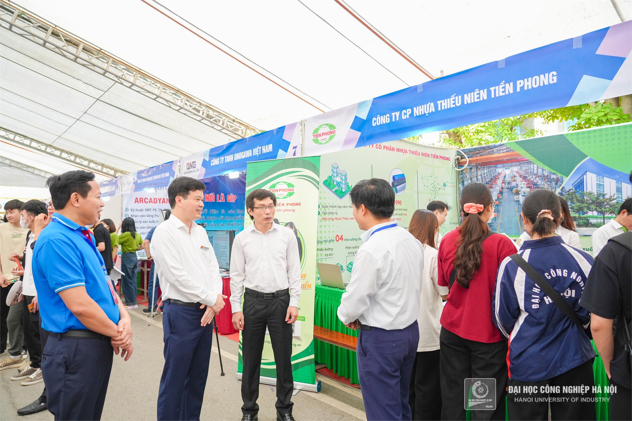 Đại diện cho 83 doanh nghiệp tham dự, Ông Trần Nhật Ninh - Phó Tổng giám đốc - Công ty CP Nhựa Thiếu niên Tiền Phong gửi lời cảm ơn Lãnh đạo, Ban giám hiệu Đại học Công nghiệp Hà Nội đã tổ chức Ngày hội việc làm rất quy mô và ý nghĩa. Theo ông Trần Nhật Ninh - Phó Tổng Giám đốc Công ty Cổ phần nhựa Thiếu niên tiền phong, hoạt động hợp tác giữa Nhà trường và Doanh nghiệp đóng vai trò quan trọng trong đáp ứng yêu cầu đổi mới của doanh nghiệp. Thông qua ngày hội đã tạo cơ hội cho các doanh nghiệp có thể tuyển dụng được nguồn nhân lực dồi dào và có chất lượng cao.