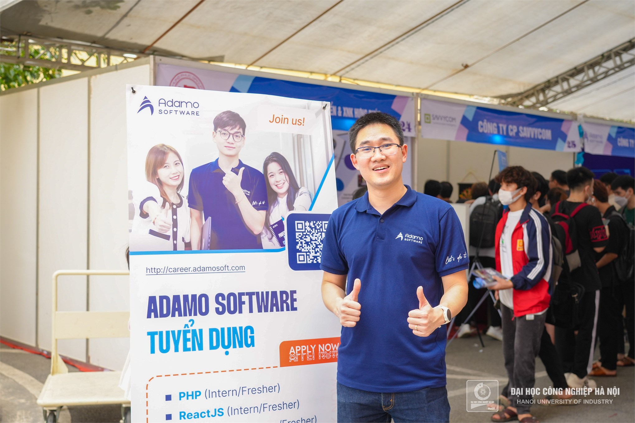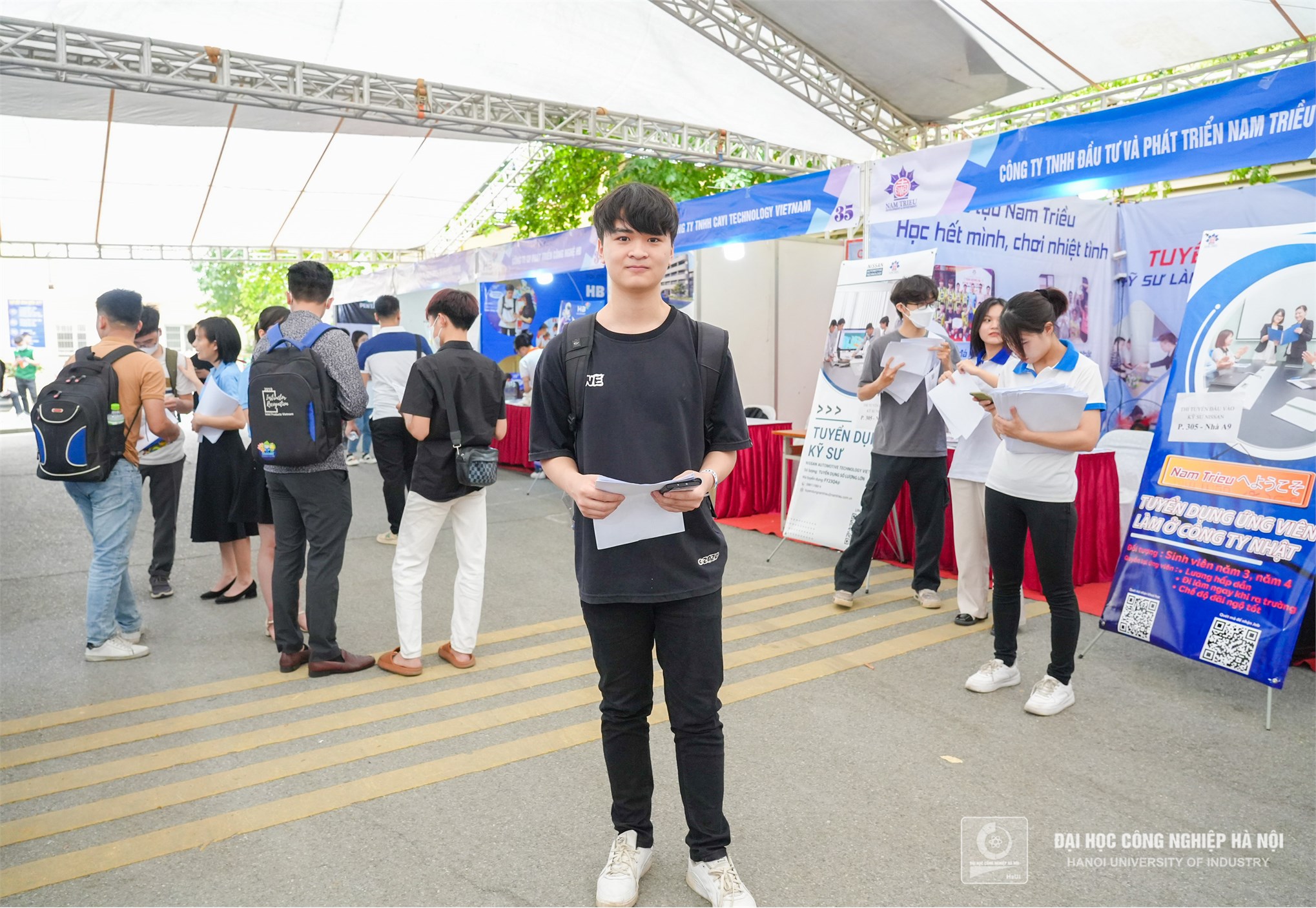 Bạn Nguyễn Mạnh Cường - Sinh viên năm 3, Khoa Công nghệ thông tin chia sẻ: Đây là lần thứ 2 em tham dự Ngày hội việc làm, và em cảm thấy không khí ở đây vẫn luôn vui vẻ, nhộn nhịp. Em có cơ hội được tìm hiểu thông tin trực tiếp từ các doanh nghiệp đặc biệt là được tìm hiểu sâu hơn vị trí lập trình Android – lĩnh vực mà em đang rất quan tâm