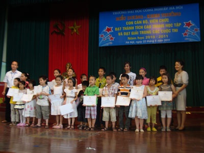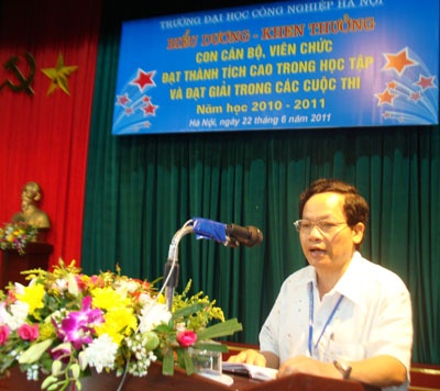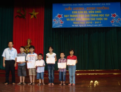 Để động viên, khích lệ và biểu dương khen thưởng con cán bộ viên chức (CBVC) có nhiều thành tích trong học tập, mang lại niềm vui, niềm tự hào phấn khởi cho cán bộ viên chức đang công tác tại trường, sáng 22/6 trường Đại học Công nghiệp Hà Nội tổ chức buổi gặp mặt biểu dương, khen thưởng con cán bộ viên chức lao động đạt danh hiệu học sinh giỏi và đạt giải trong các cuộc thi học sinh giỏi cấp trường, huyện, thành phố, quốc gia, quốc tế năm học 2010-2011.