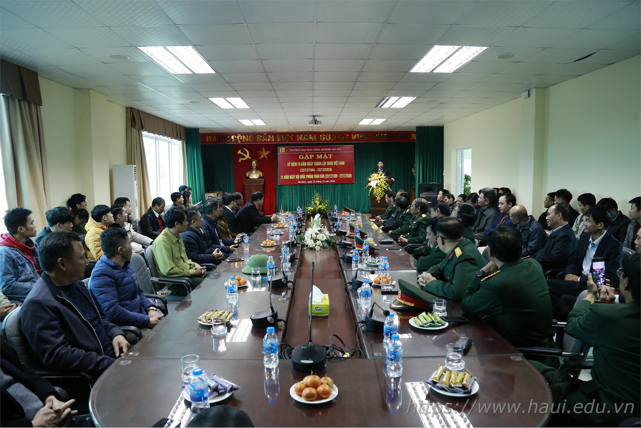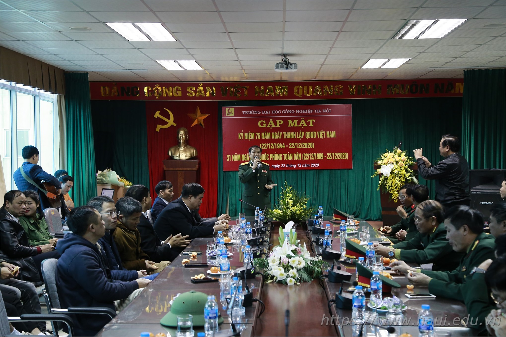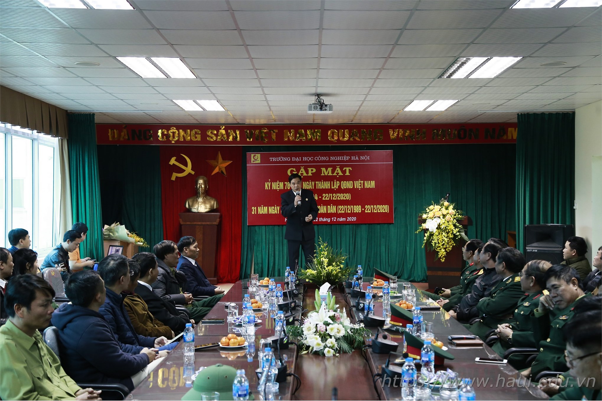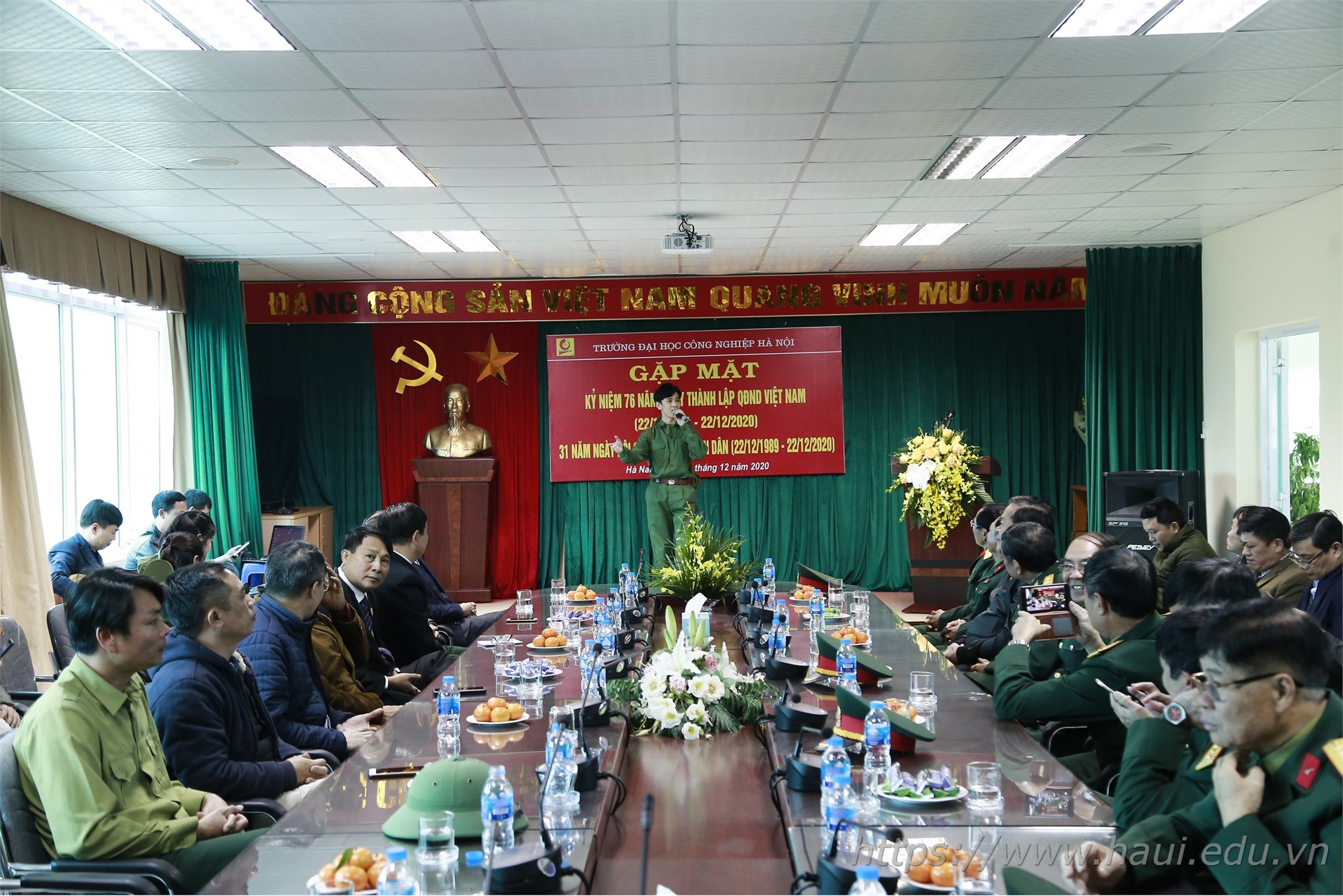 Chiều ngày 22/12, Đại học Công nghiệp Hà Nội tổ chức buổi gặp mặt truyền thống kỷ niệm 76 năm ngày thành lập Quân đội nhân dân Việt Nam (22/12/1944 - 22/12/2020) và 31 năm ngày hội quốc phòng toàn dân (22/12/1989 - 22/12/2020).