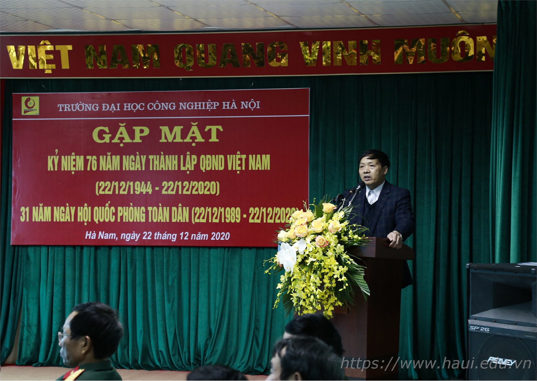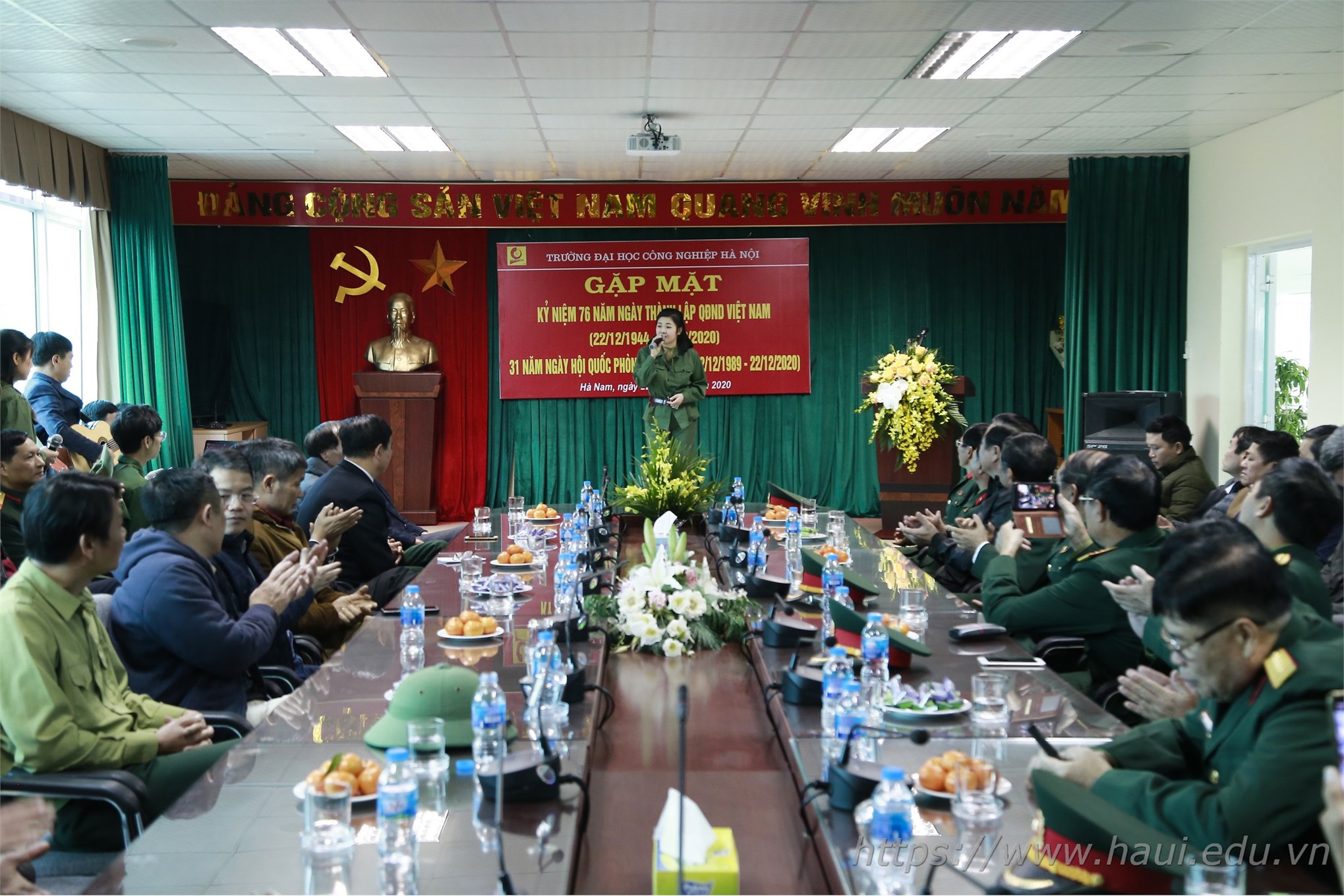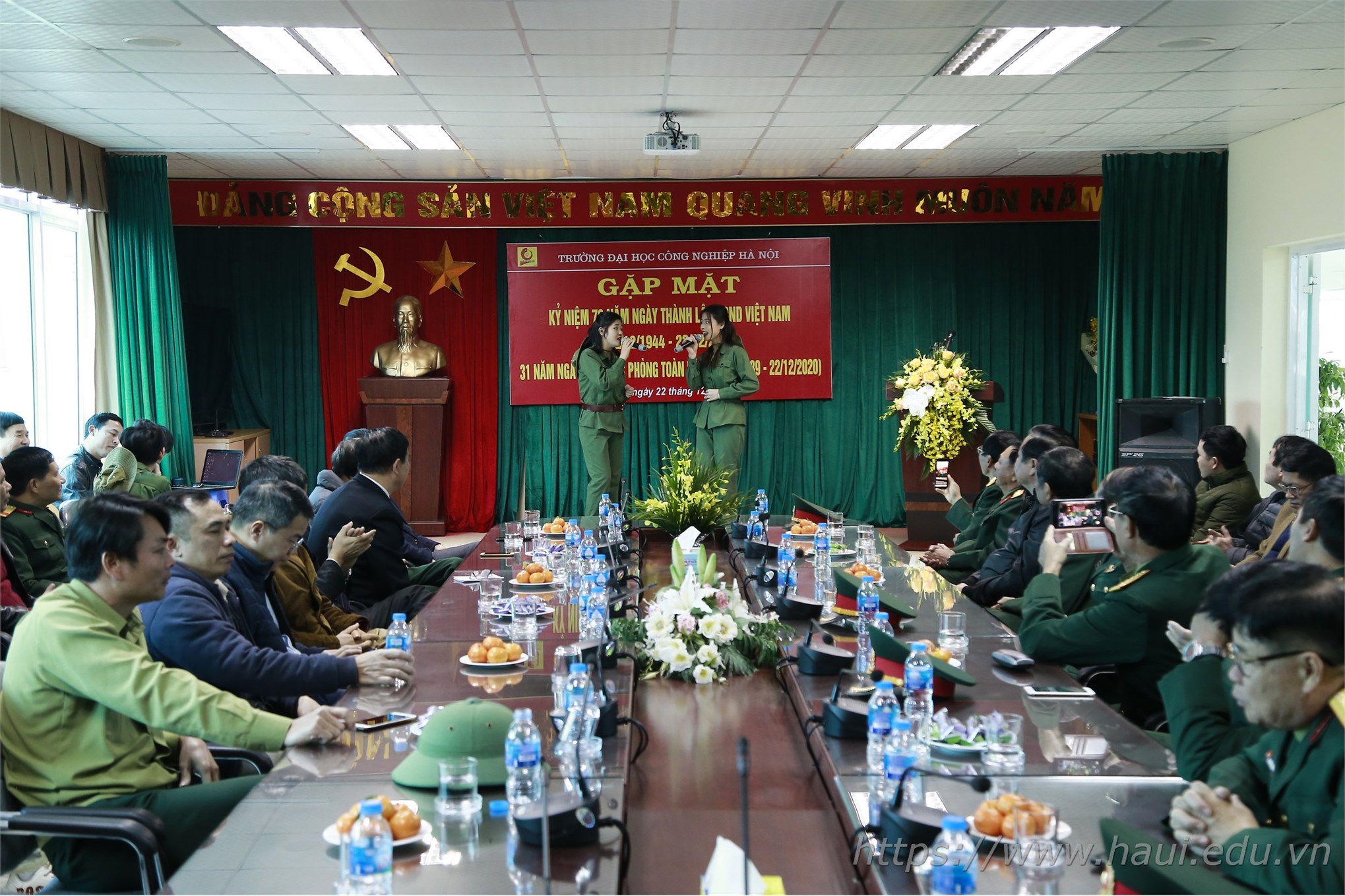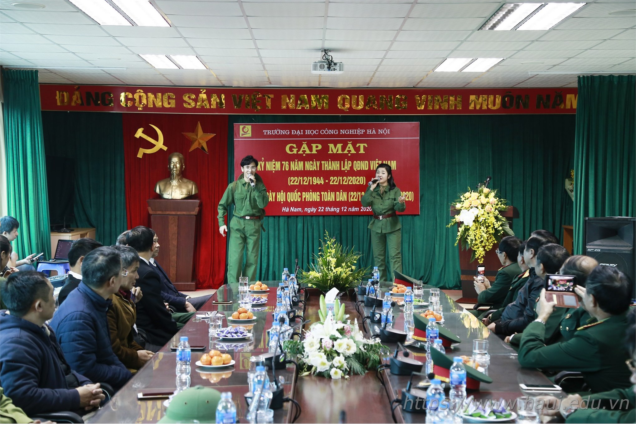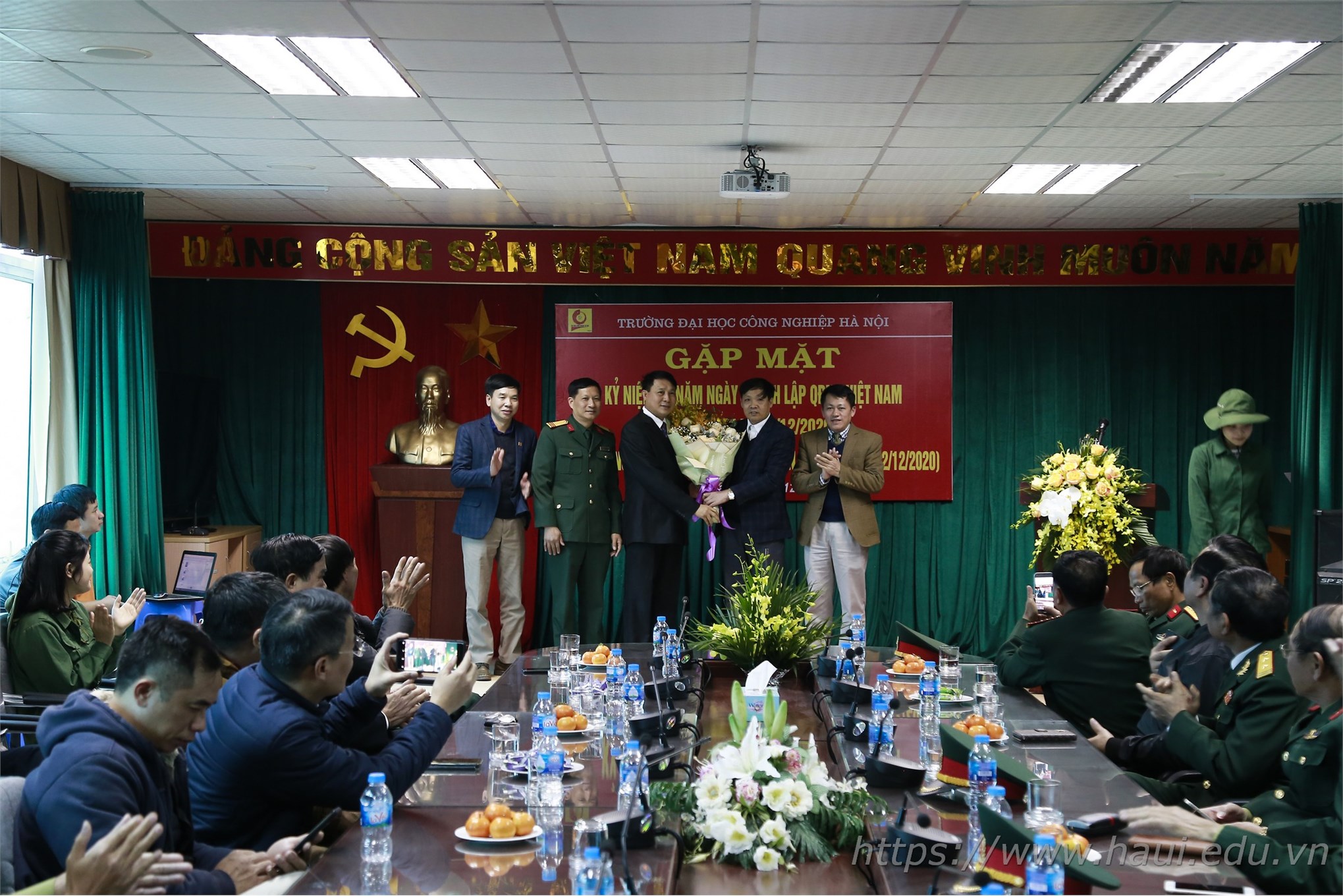 Chiều ngày 22/12, Đại học Công nghiệp Hà Nội tổ chức buổi gặp mặt truyền thống kỷ niệm 76 năm ngày thành lập Quân đội nhân dân Việt Nam (22/12/1944 - 22/12/2020) và 31 năm ngày hội quốc phòng toàn dân (22/12/1989 - 22/12/2020).