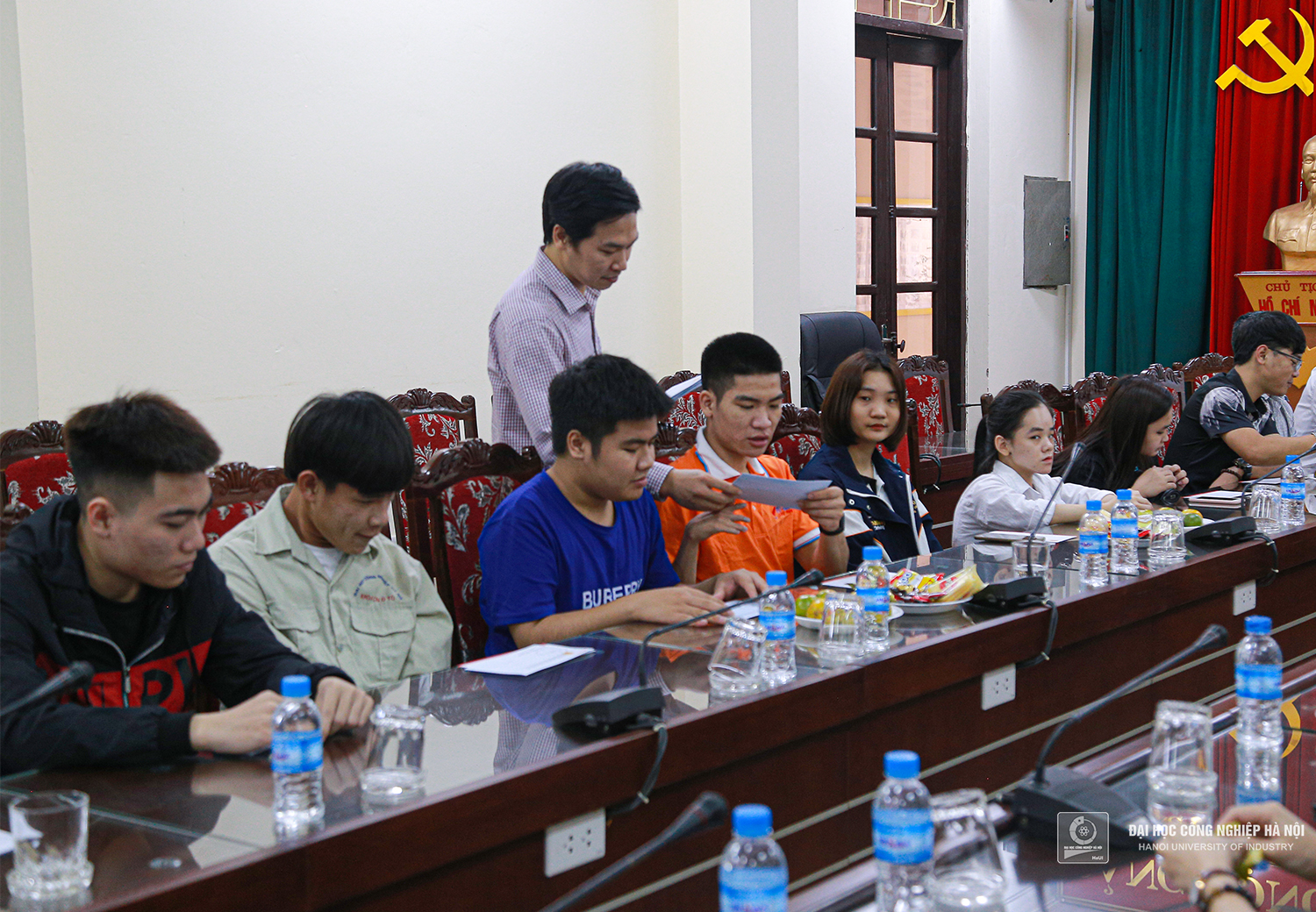 Tham dự buổi gặp mặt có PGS.TS. Phạm Văn Bổng - Phó Hiệu trưởng nhà trường, PGS. TS Phạm Văn Đông, Chủ tịch Công đoàn trường, cùng đại diện phòng Công tác sinh viên, Tổ chức Hành chính, Tài chính Kế toán, Trạm Y tế, Trung tâm QLKTX, Đoàn Thanh niên và Hội sinh viên.