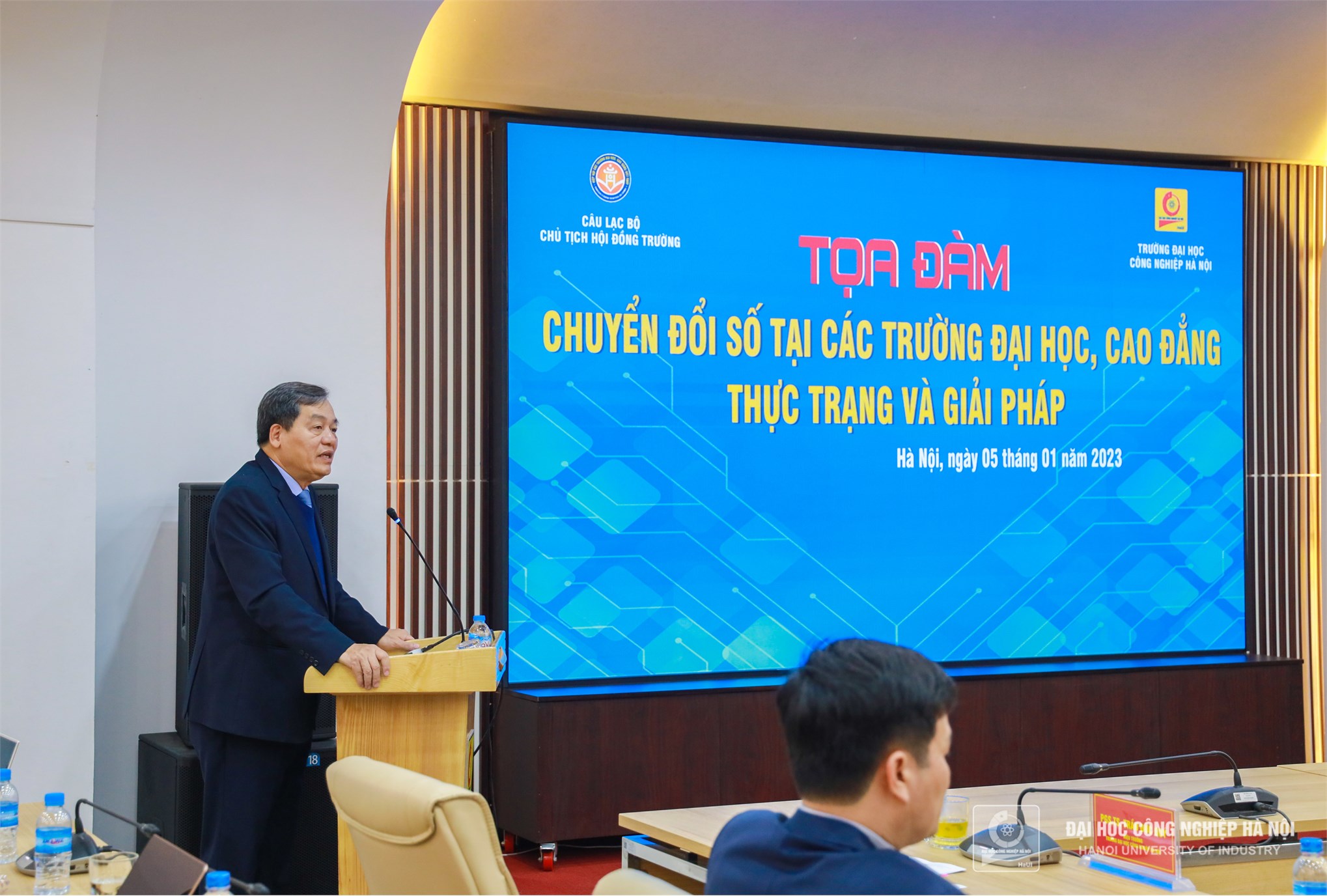 Phát biểu khai mạc tọa đàm, PGS.TS.Trần Đức Qúy, Hiệu trưởng Trường Đại học Công nghiệp Hà Nội nhấn mạnh, chuyển đổi số là xu thế tất yếu trong bối cảnh cuộc cách mạng công nghiệp lần thứ 4. Đặc biệt, những năm qua, Đảng và Nhà nước đã có những chủ trương, chính sách mạnh mẽ về chuyển đối số đối với giáo dục và đào tạo.