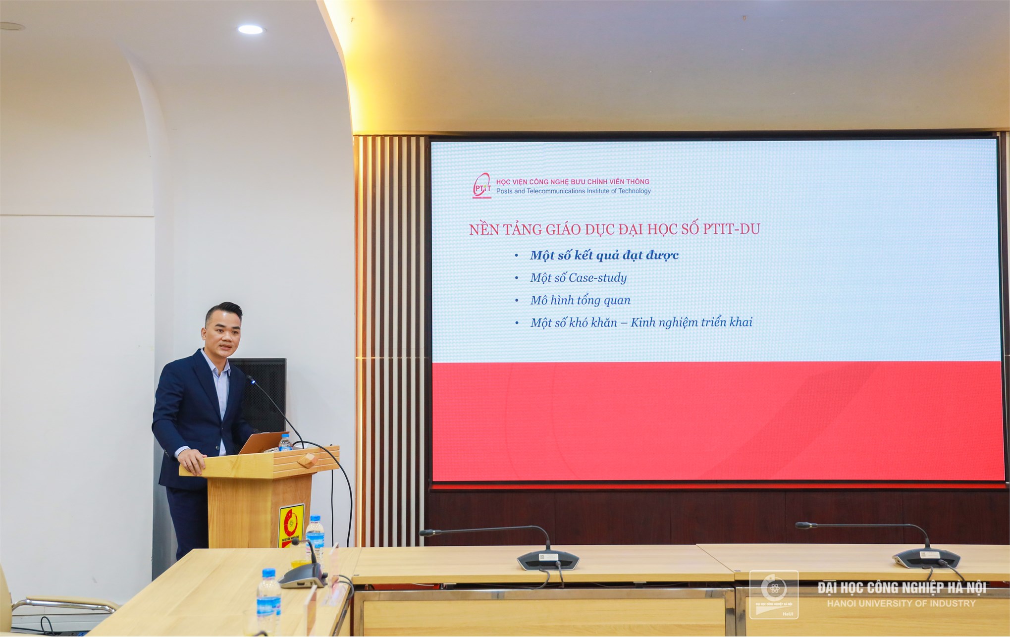 Diễn giả TS.Ngô Quốc Dũng, Đại diện tổ chuyển đổi số của Học viện Bưu chính Viễn thông trình bày tham luận “Chuyển đổi số tại Học viện Bưu chính viễn thông: Mô hình, một số kết quả và bài học”