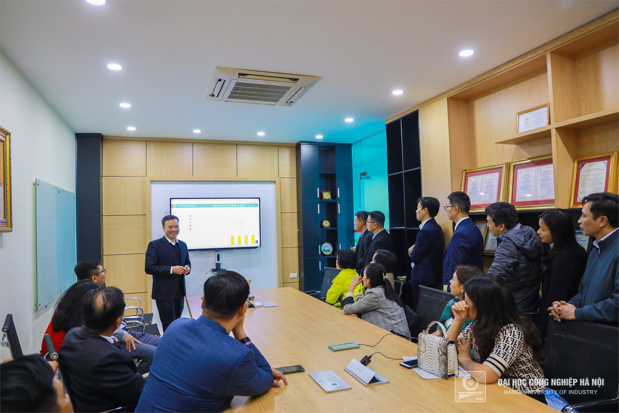Đoàn tham quan Trung tâm Đảm bảo chất lượng - nơi xây dựng triển khai đại học điện tử tại Trường Đại học Công nghiệp Hà Nội