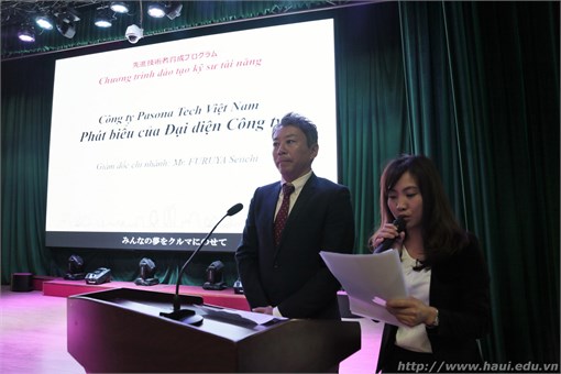 Đại diện Lãnh đạo Công ty Pasona Tech Việt Nam, Ông Furuya – Giám đốc Công ty cho biết: Chào đón kỉ niệm 40 năm thiết lập quan hệ ngoại giao Việt Nam – Nhật Bản, khẳng định mối liên kết giữa Doanh nghiệp và các trường đại học, chương trình liên kết đào tạo kỹ sư trình độ cao nhằm phục vụ cho lĩnh vực công nghệ ô tô nói chung và góp phần vào quá trình phát triển cũng như bồi dưỡng nhân lực cho ngành công nghệ ô tô của Việt Nam nói riêng.