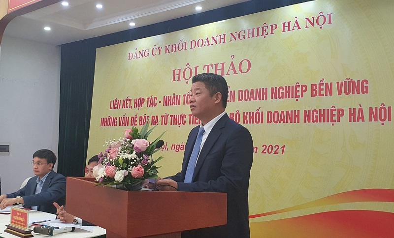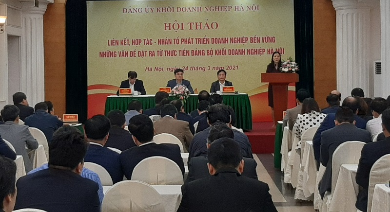 Khai mạc Hội thảo, Bí thư Đảng ủy Khối Doanh nghiệp Hà Nội Nguyễn Trường Sơn nhấn mạnh: Đảng bộ khối hiện có 109 tổ chức cơ sở Đảng, với gần 15.000 đảng viên và hơn 200.000 người lao động, gồm nhiều loại hình DN hoạt động, kinh doanh đa ngành nghề, địa bàn hoạt động rộng khắp cả nước và nước ngoài. Với nhiều tiềm năng, lợi thế, các DN trong Khối có thể bổ trợ cho nhau, là khách hàng của nhau và cùng vượt qua thách thức, chủ động tận dụng mọi cơ hội tăng cường hợp tác vì sự phát triển bền vững của mỗi DN, đóng góp vào sự phát triển chung. Đảng ủy Khối luôn chú trọng thực hiện vai trò lãnh đạo, định hướng, kêt nối các DN để thúc đẩy quan hệ hợp tác nhiều mặt giữa các DN trong Khối, hiện đã hỗ trợ, kêt nối để gần 40 DN tiến hành liên kết, hợp tác, thu được kết quả thiết thực, cụ thể thông qua 3 hình thức: Liên kết, hợp tác trong sử dụng sản phẩm, dịch vụ của nhau, liên kết hợp tác trong chuỗi giá trị và liên kết hợp tác giữa viện, trường và DN sản xuất kinh doanh.