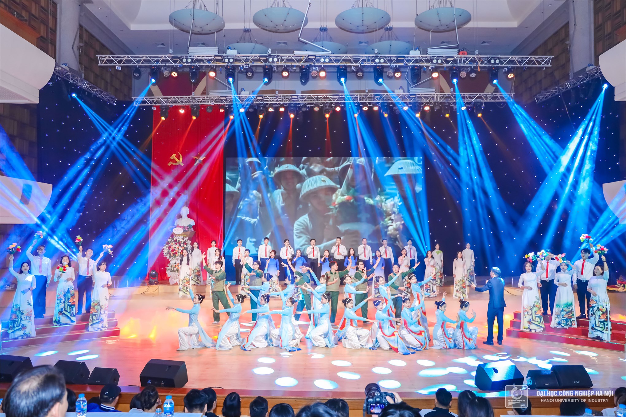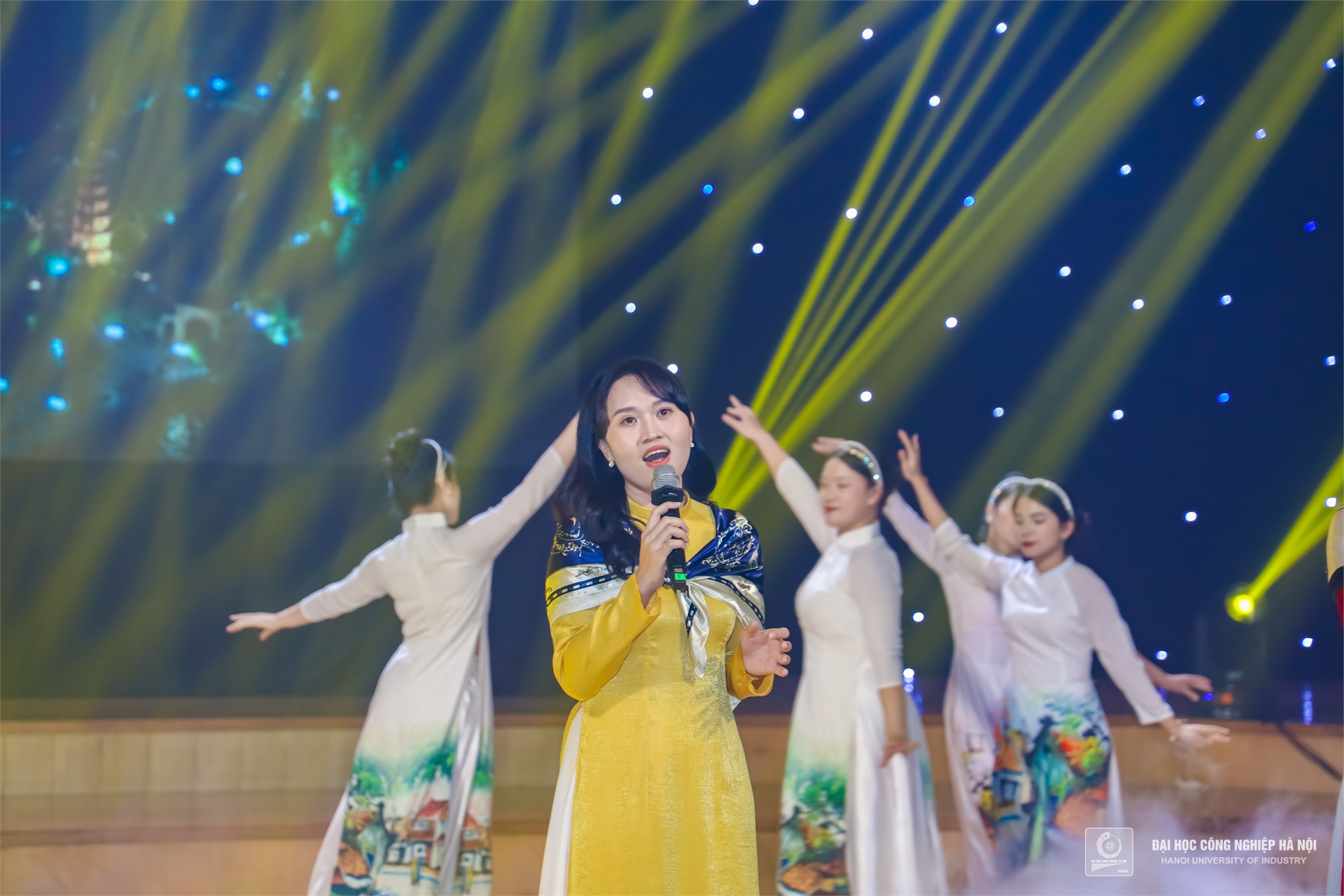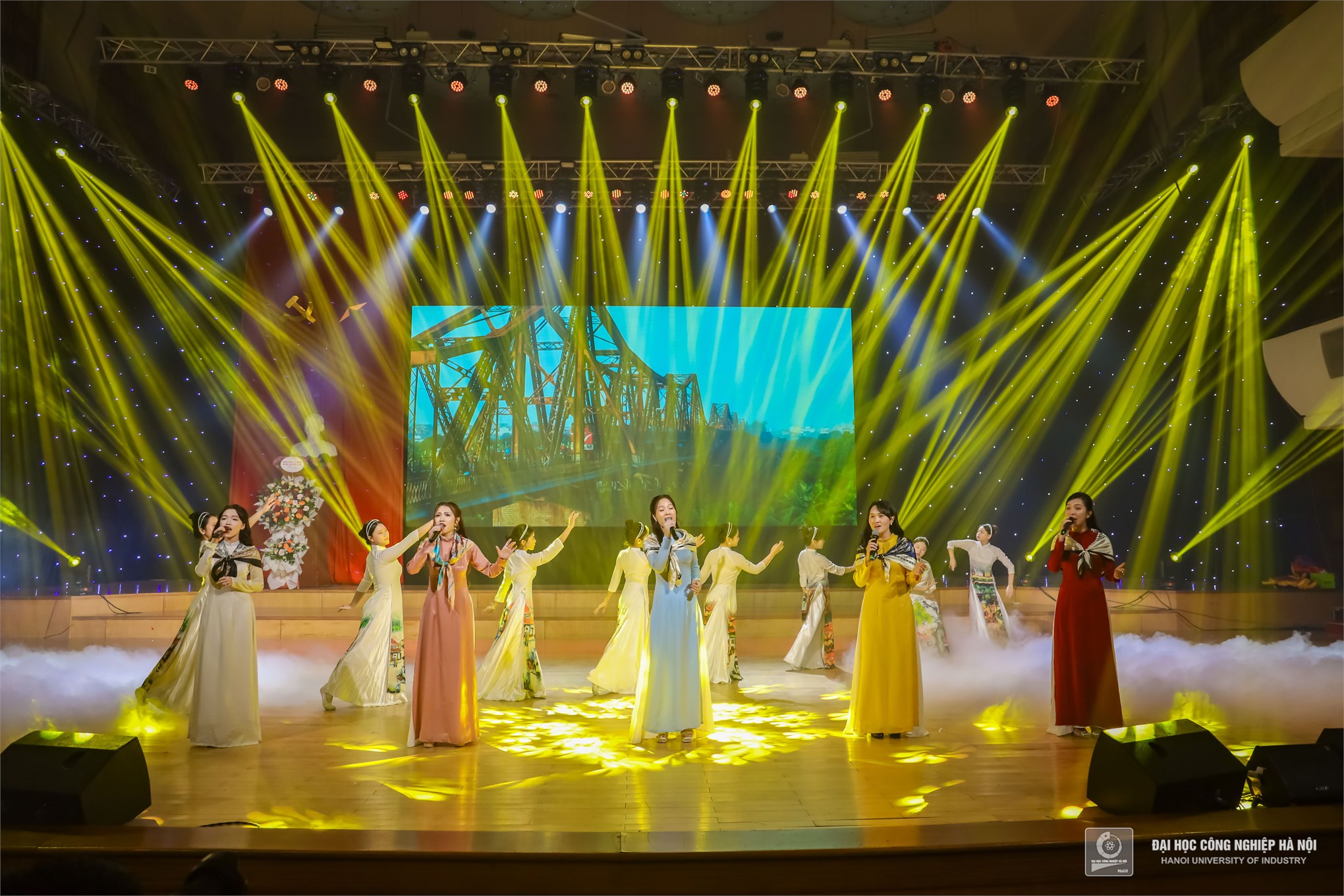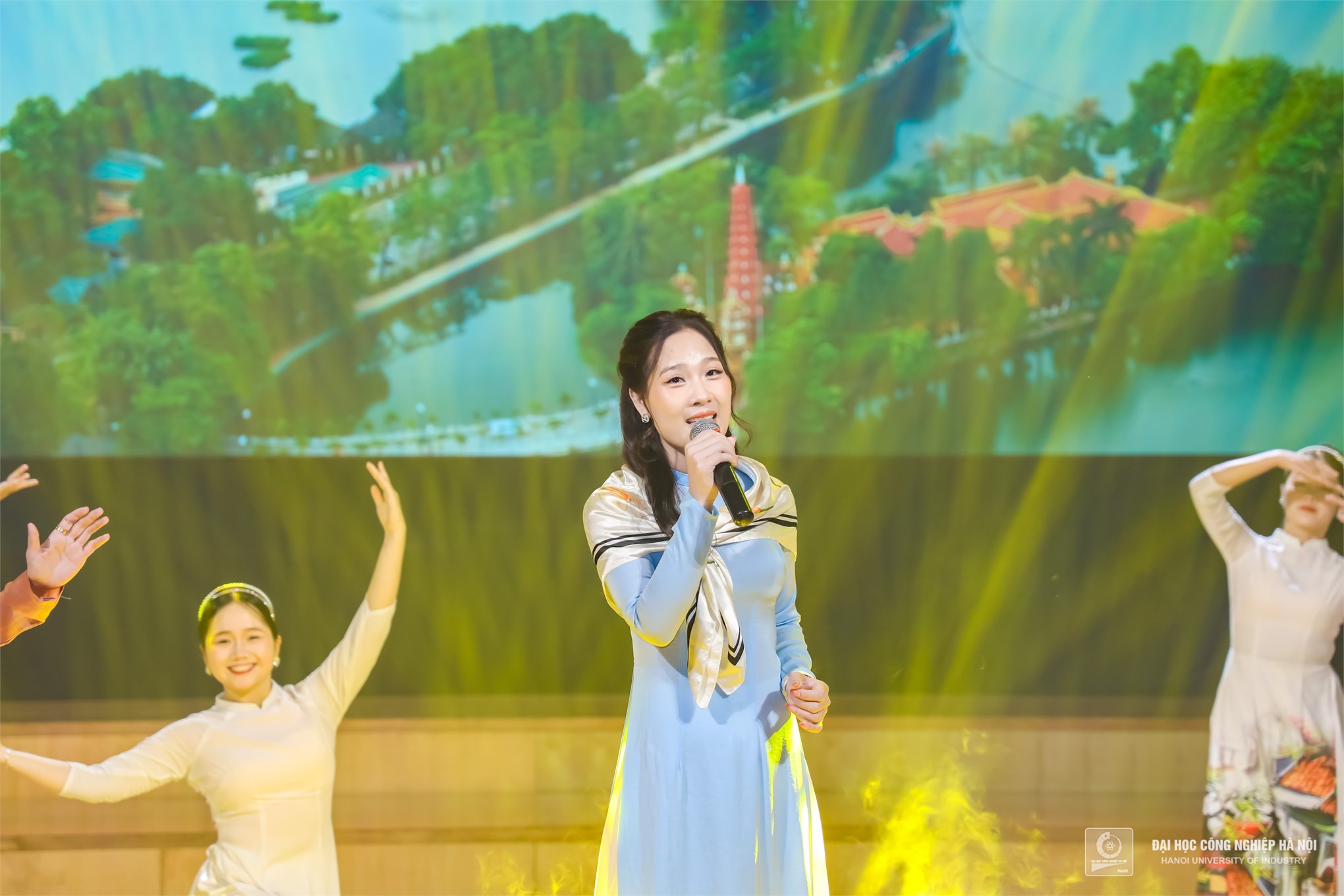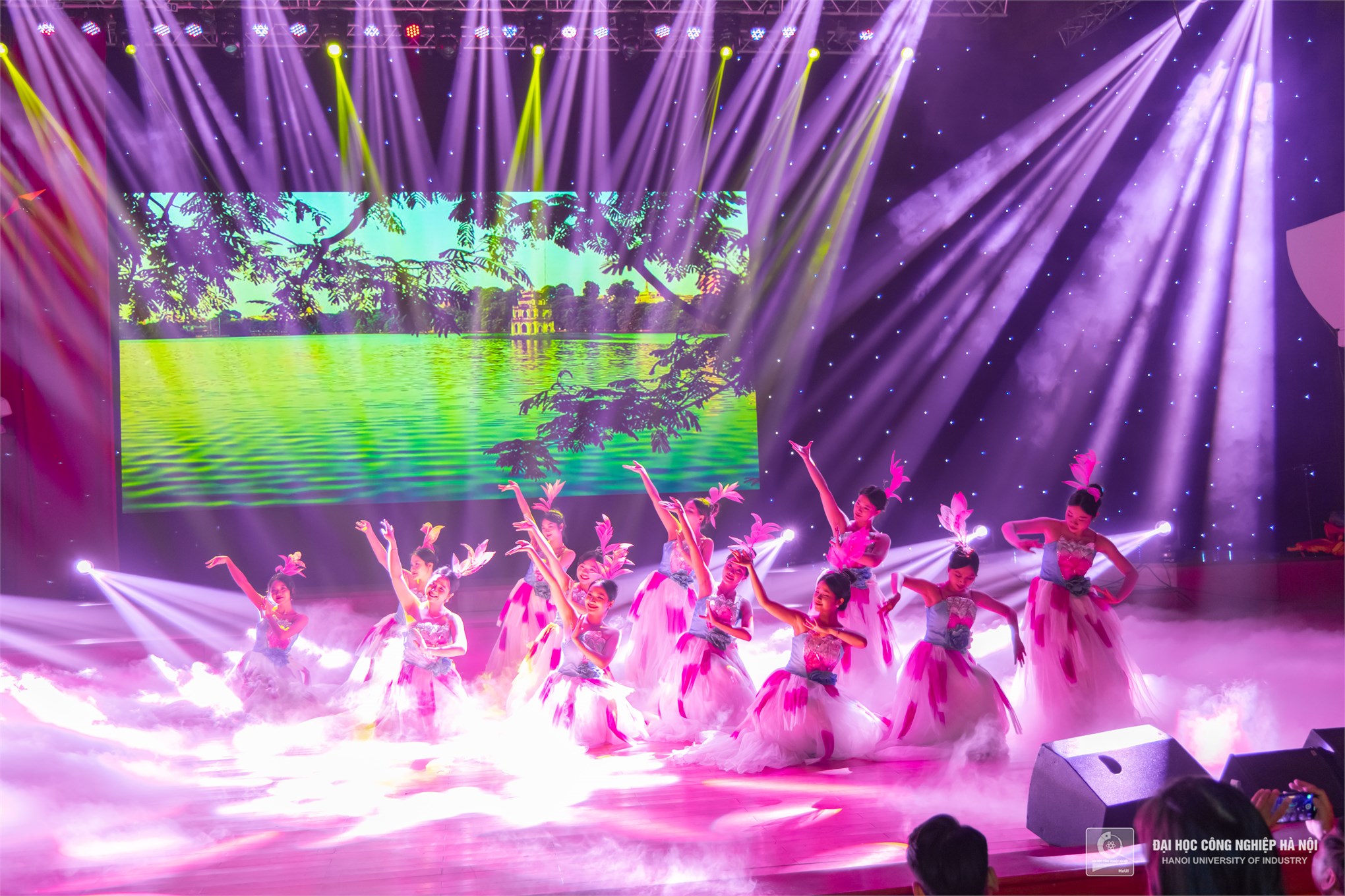 Trường Đại học Công nghiệp Hà Nội đã mang đến Hội diễn một chương trình nghệ thuật đầy cảm xúc với chủ đề “Nhớ về Hà Nội”, như một bản hòa ca rực rỡ, tràn đầy sắc màu và hoài niệm. Những giai điệu sâu lắng vang lên, dẫn dắt người nghe trở về với những khoảnh khắc lịch sử hào hùng và niềm tự hào sâu sắc về Thủ đô yêu dấu. Từng lời ca, tiếng hát là tiếng gọi từ lòng Hà Nội thanh lịch, kiêu hãnh; là tiếng vọng của đất trời Thăng Long – vừa cổ kính, vừa tràn đầy sức sống, khắc sâu trong tâm trí hình ảnh một mảnh đất ngàn năm văn hiến, trường tồn với thời gian. Qua những điệu múa mềm mại, uyển chuyển đã khéo léo vẽ nên một bức tranh lung linh, sống động, lãng mạn về Thủ đô. Đây không chỉ đơn thuần là một màn biểu diễn nghệ thuật, mà còn là lời tri ân sâu lắng dành cho Thủ đô, một dấu ấn không thể phai nhòa trong lòng khán giả. Chương trình đã tôn vinh Hà Nội – trái tim của cả nước, nơi hồn thiêng sông núi kết tinh cùng khí phách anh hùng, làm nên hình ảnh một Thủ đô ngàn năm văn hiến, kiêu hãnh và trường tồn.