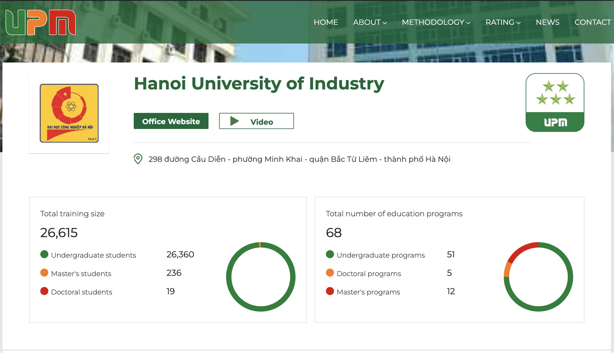 HaUI được đánh giá 5 sao trên hệ thống đánh giá đối sánh UPM