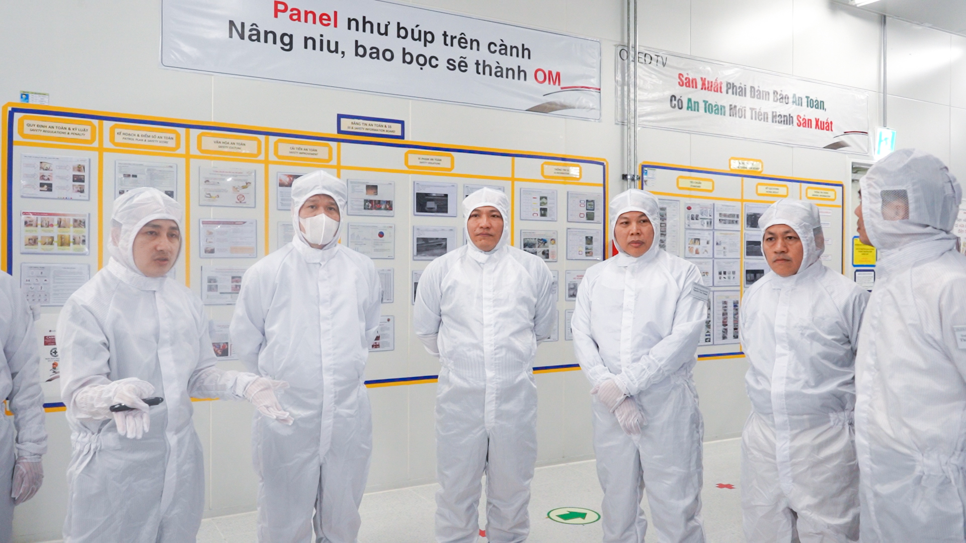 Trong khuôn khổ của buổi làm việc, đoàn công tác đã tham quan phòng trưng bày màn hình OLED, dây chuyển sản xuất, trung tâm đào tạo, ký túc xá của sinh viên,….