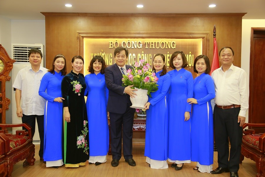 Nhân dịp này, Hiệu trưởng cũng trao đổi với Ban nữ công về kết quả, thành tựu, vị thế của Trường trong 120 năm xây dựng, phát triển; những mục tiêu, chiến lược và định hướng phát triển ĐHCNHN trong thời gian tới; phân tích những thuận lợi và thách thức đối với nhà trường trong quá trình đổi mới căn bản toàn diện giáo dục đào tạo và thời kỳ cách mạng công nghiệp 4.0. Toàn trường phải đoàn kết, tập trung trí tuệ, phát triển có chiều sâu, nâng tầm thương hiệu ĐHCNHN. Nhà trường mong muốn Ban nữ công cùng với các tổ chức, đơn vị trong trường triển khai kịp thời, hiệu quả những chủ trương, định hướng, nhiệm vụ của nhà trường đến nữ công chức, viên chức và nữ sinh. Hiệu trưởng khẳng định các cấp ủy đảng, công đoàn sẽ tiếp tục quan tâm, chăm lo, bồi dưỡng, tạo điều kiện và cơ hội cho phụ nữ được khẳng định mình, được cống hiến và phát triển để nữ công chức, viên chức và nữ sinh Đại học Công nghiệp Hà Nội ngày càng tỏa sáng cả ở nơi làm việc, học tập cũng như trong gia đình.