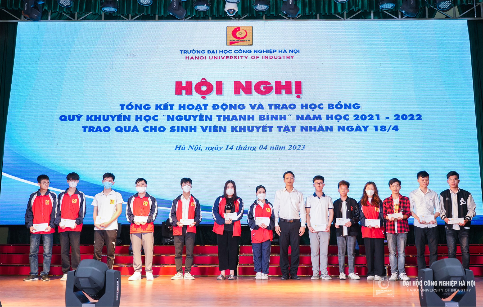 Cũng tại Hội nghị, Đại học Công nghiệp Hà Nội trao 14 xuất quà cho sinh viên khuyết tật nhân ngày Người Khuyết tật Việt Nam 18/4.