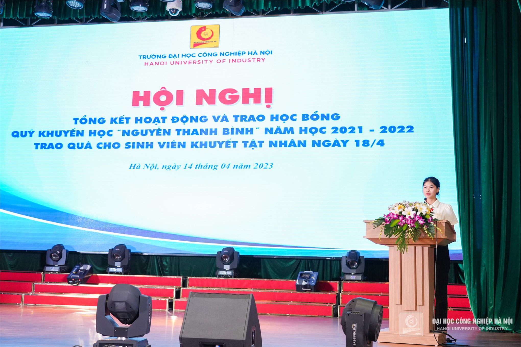 TS. Hoàng Thị Thanh Huyền - Phó trưởng phòng Công tác sinh viên, tổng kết hoạt động quỹ khuyến học “Nguyễn Thanh Bình”