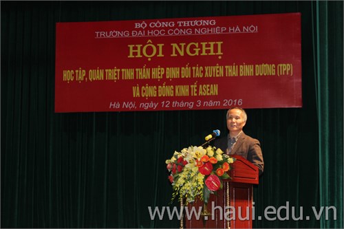Thực hiện kế hoạch công tác về việc học tập, quán triệt tinh thần Hiệp định đối tác kinh tế chiến lược xuyên Thái Bình Dương (TPP) và Cộng đồng kinh tế ASEAN, chiều ngày 12/3/2016, Đảng bộ Trường Đại học Công nghiệp Hà Nội tổ chức Hội nghị học tập, quán triệt tinh thần Hiệp định đối tác kinh tế chiến lược xuyên Thái Bình Dương (TPP) và Cộng đồng kinh tế ASEAN tới các đồng chí đảng viên trong toàn Đảng bộ.