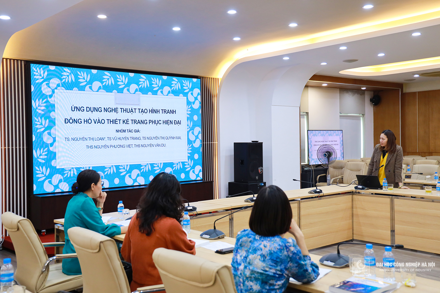 Báo cáo “Ứng dụng nghệ thuật tạo hình tranh Đông Hồ vào thiết kế trang phục hiện đại” của nhóm giảng viên khoa CN May & TKTT, ĐHCNHN