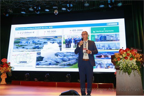 Ông Frank Knafla, Chuyên gia đến từ Tập đoàn Phoenix Contact trình bày bài Keynote tại Hội nghị