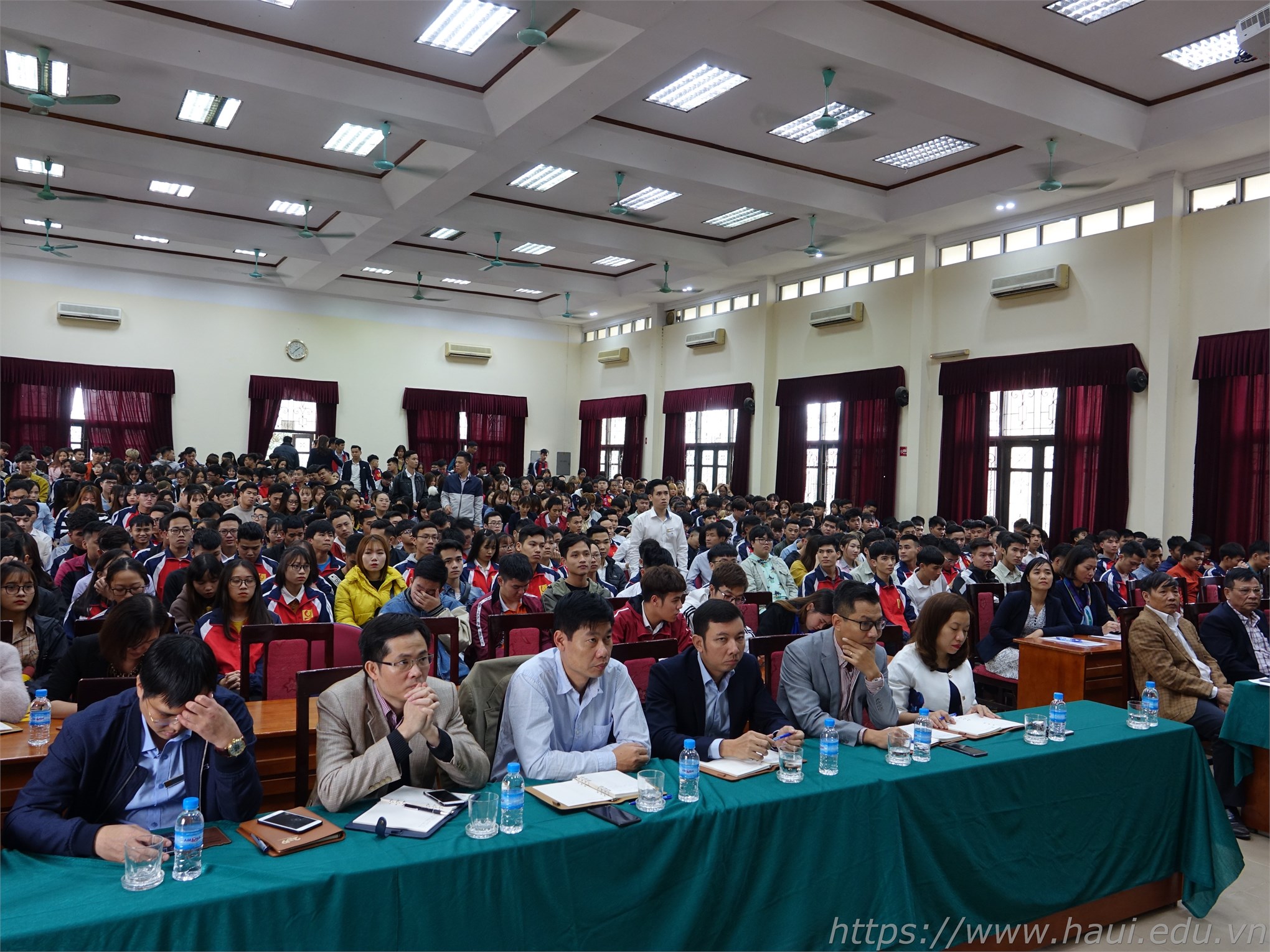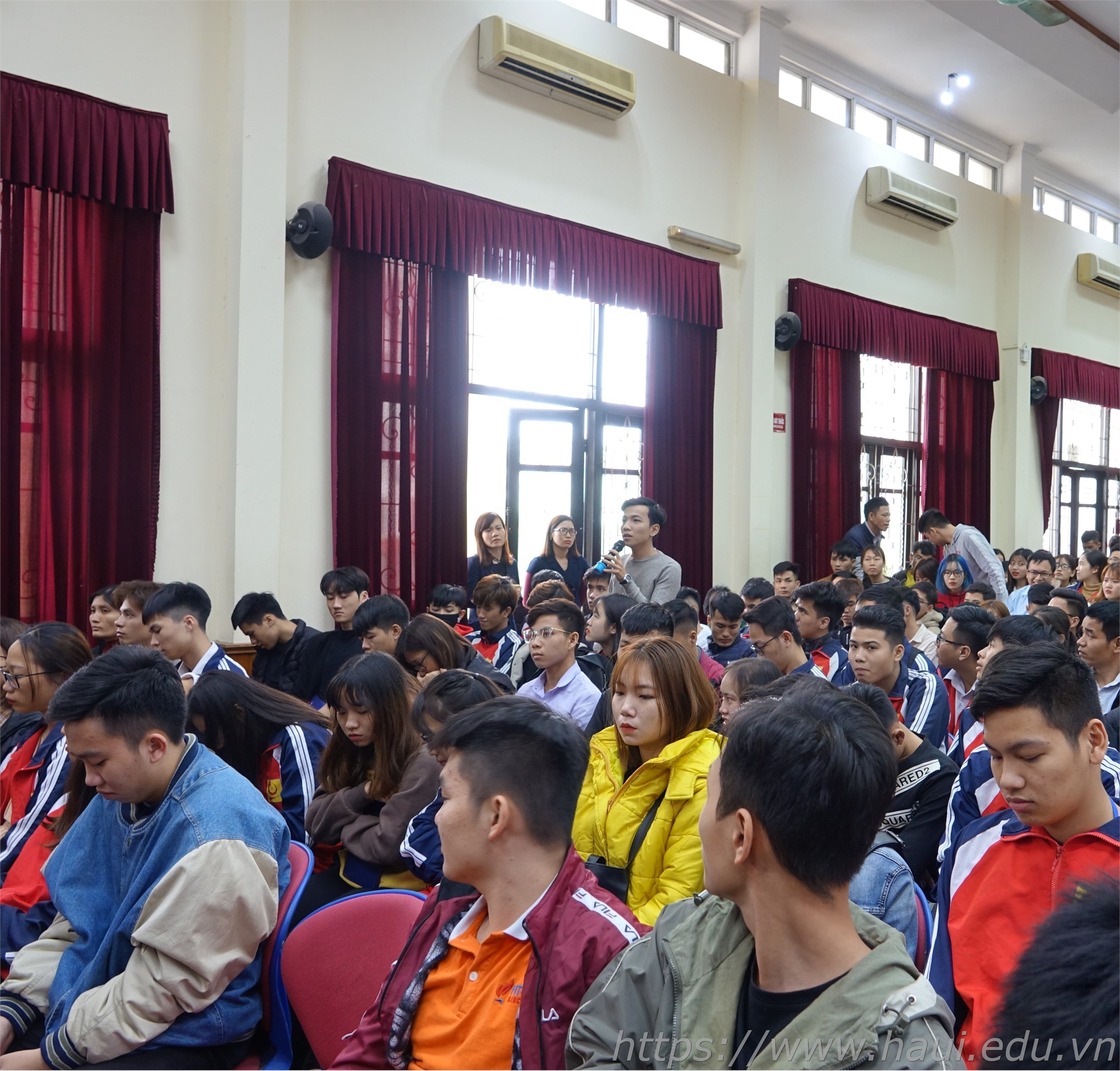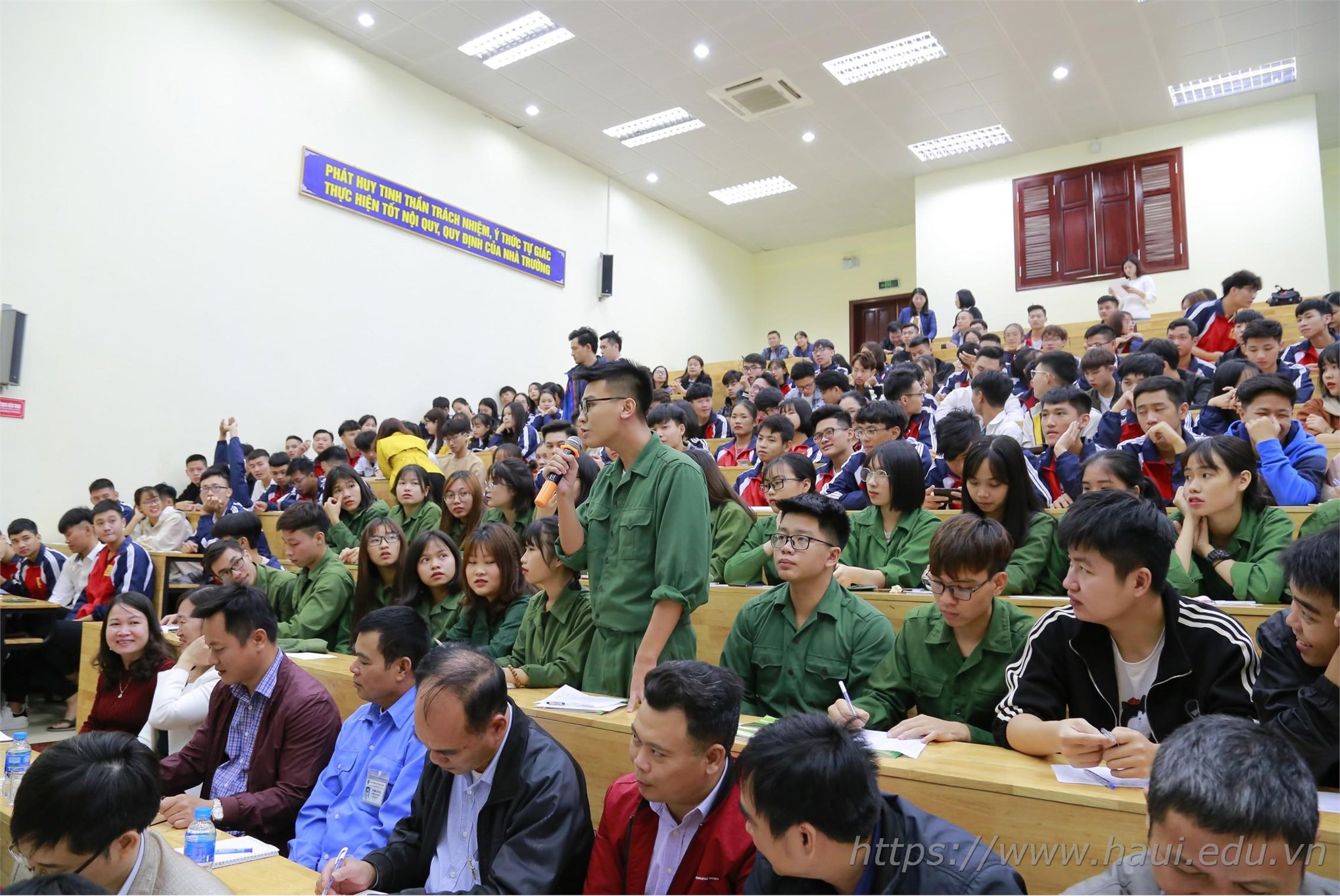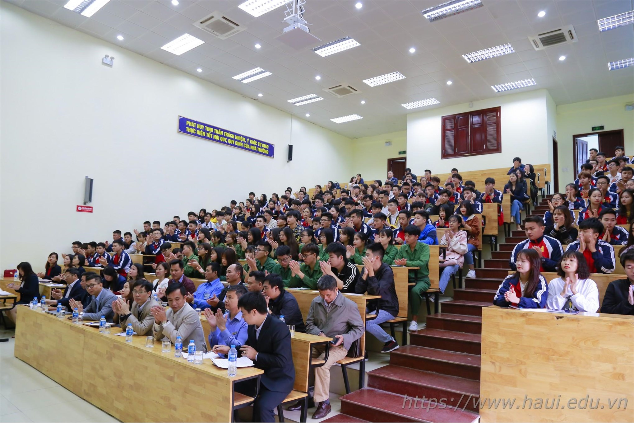 Thầy Trần Ngọc Khánh - Trưởng phòng CTHSSV đã trình bày báo cáo tổng kết tình hình học tập của sinh viên, những thông tin về tình hình an ninh trật tự trong và ngoài trường. Báo cáo nhấn mạnh một số nội dung như: các hoạt động giáo dục chính trị tư tưởng được tổ chức định kỳ, thường xuyên và có hiệu quả như Tuần sinh hoạt công dân - sinh viên đầu khóa; tổ chức cho sinh viên tiêu biểu tham quan, tìm hiểu thực tế tại khu di tích chiến trường Điện Biên Phủ; tham gia cuộc thi “Ánh sáng soi đường”; thi “Tuyên truyền giáo dục pháp luật”…; Trong năm học 2018-2019 nhà trường đã xét, cấp học bổng khuyến khích học tập cho 2605 sinh viên với tổng số tiền 8,2 tỉ đồng; khen thưởng sinh viên đạt thành tích cao tại các kỳ thi Olympic và thi Robocon; Sinh viên nội trú thực hiện khá tốt nội quy, quy định; Tổ chức thành công nhiều chương trình sinh viên như “Gặp mặt các thế hệ học sinh, sinh viên”; tổ chức 22 Hội thảo cơ hội việc làm, đào tạo và tuyển dụng trực tiếp,…