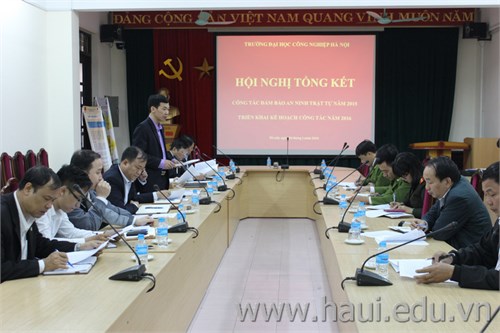 Thực hiện kế hoạch công tác năm 2015, sáng ngày 06/01/2016, Trường Đại học Công nghiệp đã tổ chức Hội nghị tổng kết công tác an ninh trật tự năm 2015 và triển khai kế hoạch công tác năm 2016. Tham dự hội nghị có đại diện công an quận Bắc Từ Liêm, công an các phường Minh Khai, Tây Tựu, TS. Nguyễn Anh Tuấn-Phó Hiệu trưởng Nhà trường, Trưởng, phó các đơn vị: phòng TCHC, CTHSSV, Trung tâm Dịch vụ-Nhà ăn-KTX, Công ty Letco, Đoàn thanh niên.