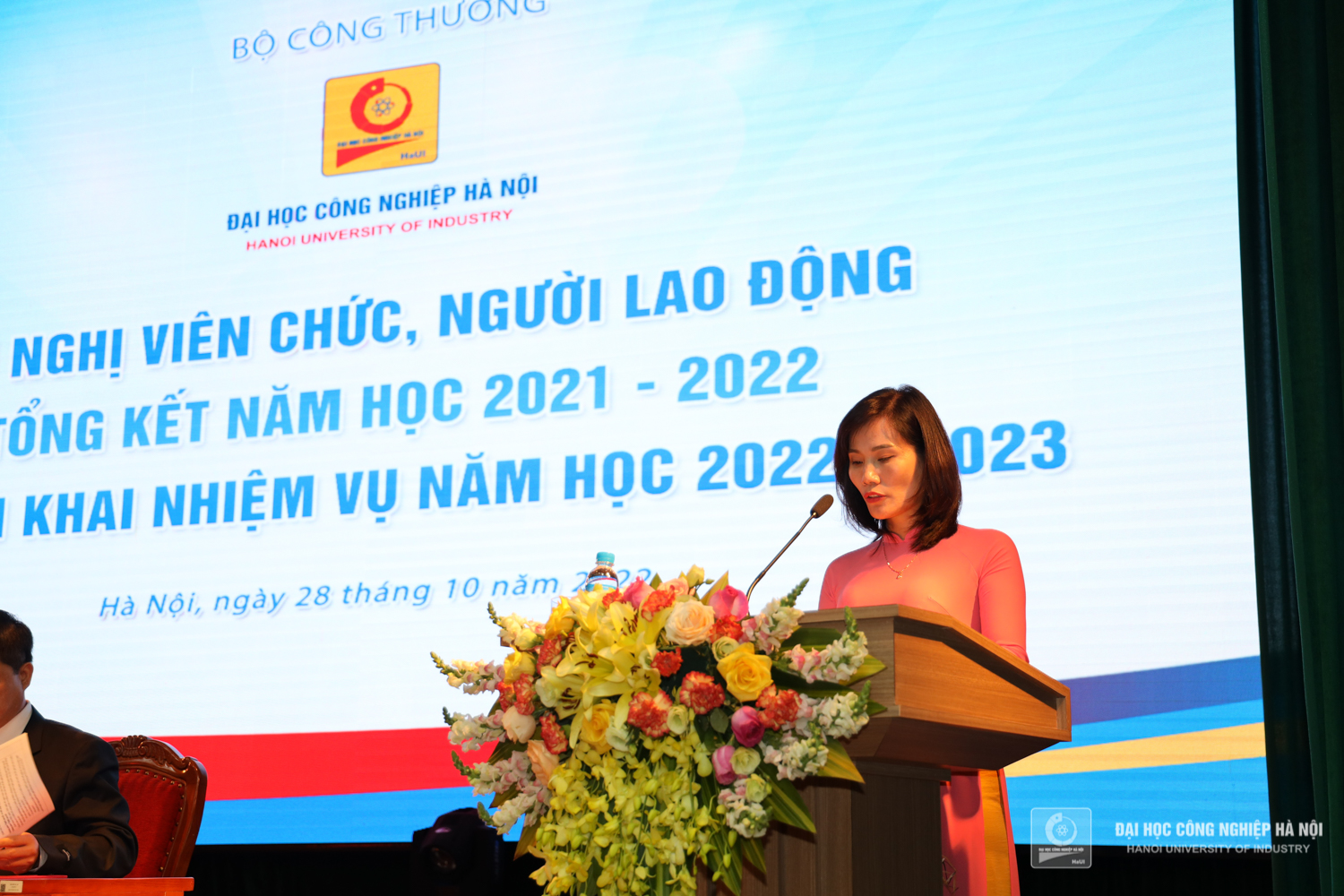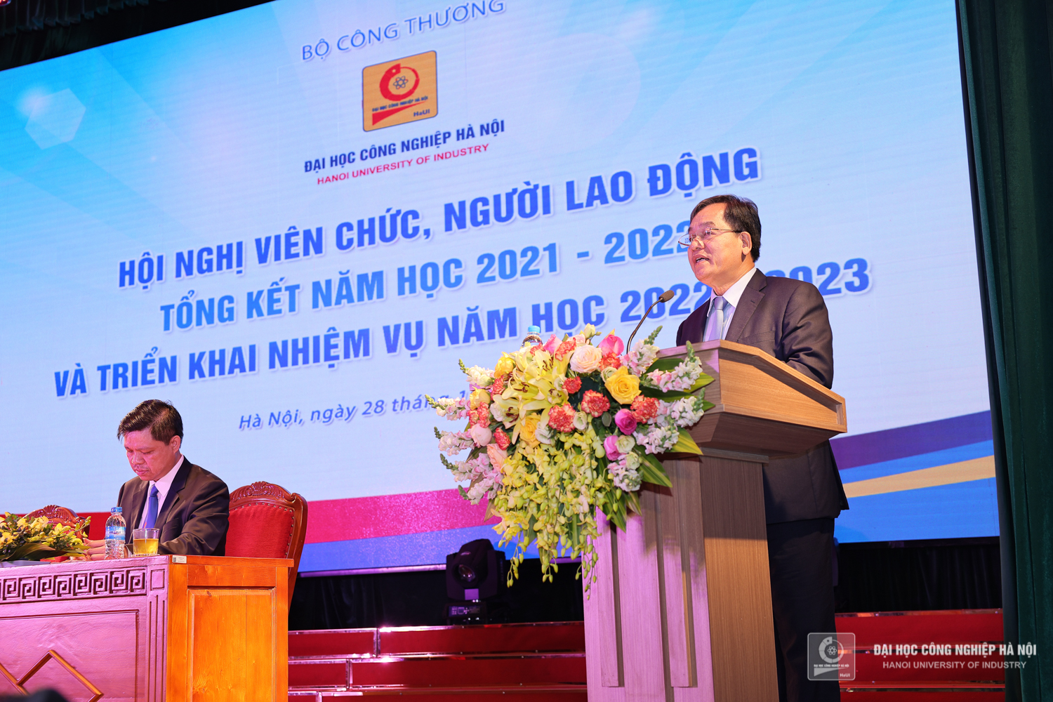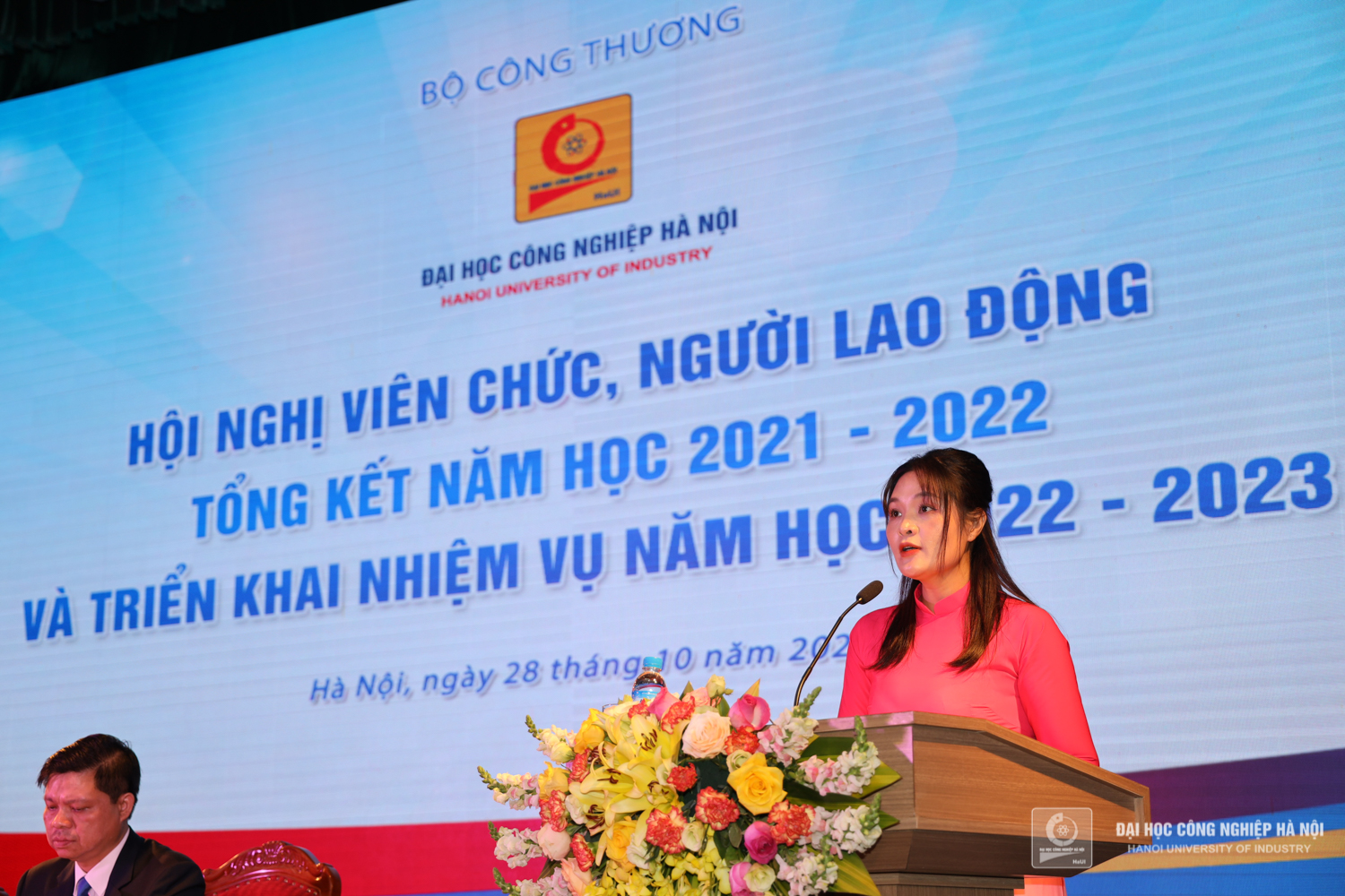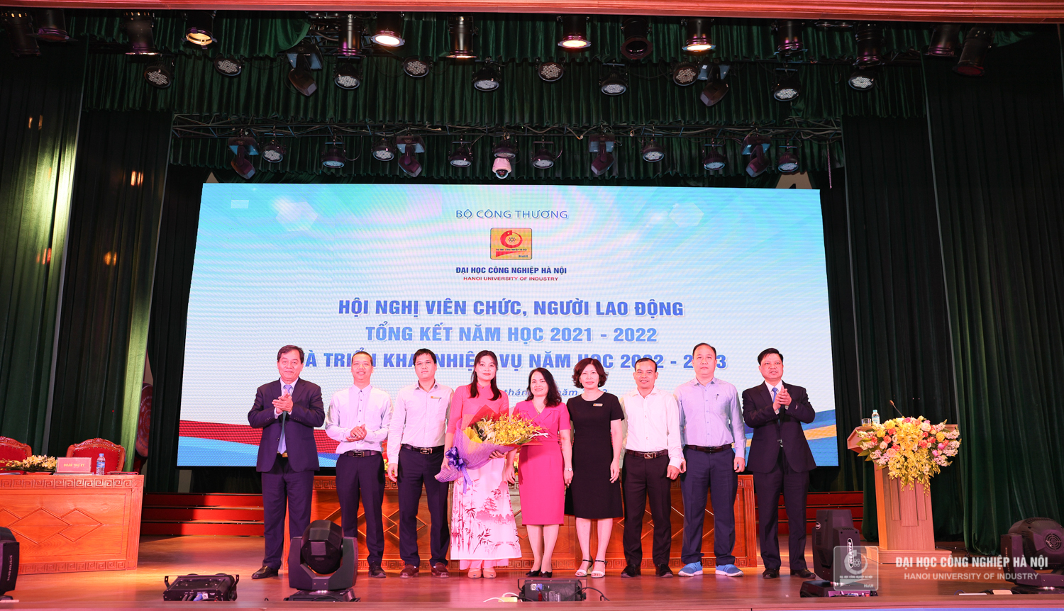 Sáng ngày 28/10, Trường Đại học Công nghiệp Hà Nội tổ chức Hội nghị viên chức, người lao động, tổng kết năm học 2021 – 2022 và triển khai nhiệm vụ năm học 2022 – 2023. PGS.TS.Trần Đức Quý - Bí thư Đảng ủy, Hiệu trưởng nhà trường; PGS.TS.Phạm Văn Đông, Chủ tịch Công đoàn trường chủ trì Hội nghị.