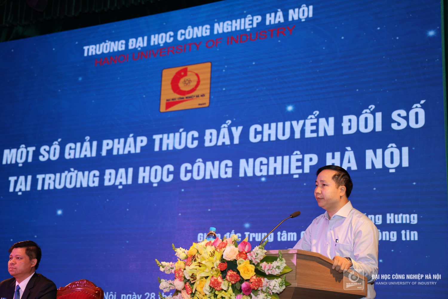 TS.Phan Đăng Hưng - Giám đốc Trung tâm Công nghệ thông tin tham luận về nội dung: Một số giải pháp thúc đẩy chuyển đổi số tại Trường Đại học Công nghiệp Hà Nội