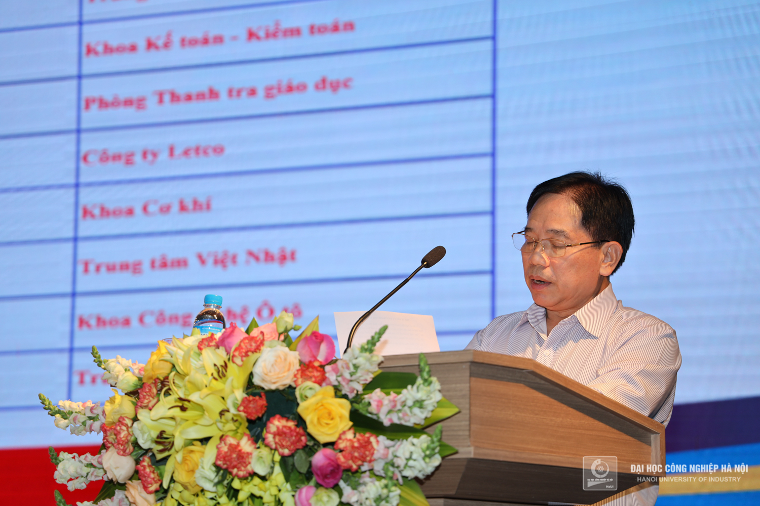 Thầy Hiệu trưởng nhấn mạnh: năm học 2021 - 2022 tiếp tục với hoạt động đào tạo trực tuyến do ảnh hưởng của dịch bệnh COVID-19, nhưng tập thể đội ngũ viên chức, giảng viên, sinh viên Trường Đại học Công nghiệp Hà Nội đã nỗ lực vượt qua, biến khó khăn thành thời cơ để đổi mới, sáng tạo, hoàn thành xuất sắc nhiệm vụ năm học.