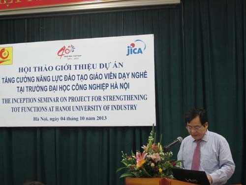Sáng ngày 04/10/2013, tại phòng hội thảo tầng 2, nhà A7, trường Đại học Công nghiệp Hà Nội phối hợp với các Cơ quan hợp tác quốc tế Nhật Bản và các cán bộ chuyên gia của Việt Nam, Nhật Bản đang tham gia thực hiện Dự án “Tăng cường năng lực đào tạo giáo viên kỹ thuật dạy nghề” tổ chức hội thảo giới thiệu các hoạt động của Dự án nhằm chia sẻ các thông tin tới cơ quan quản lý nhà nước của Việt Nam, Nhật Bản và các cơ sở giáo dục, đào tạo nghề tại Việt Nam.