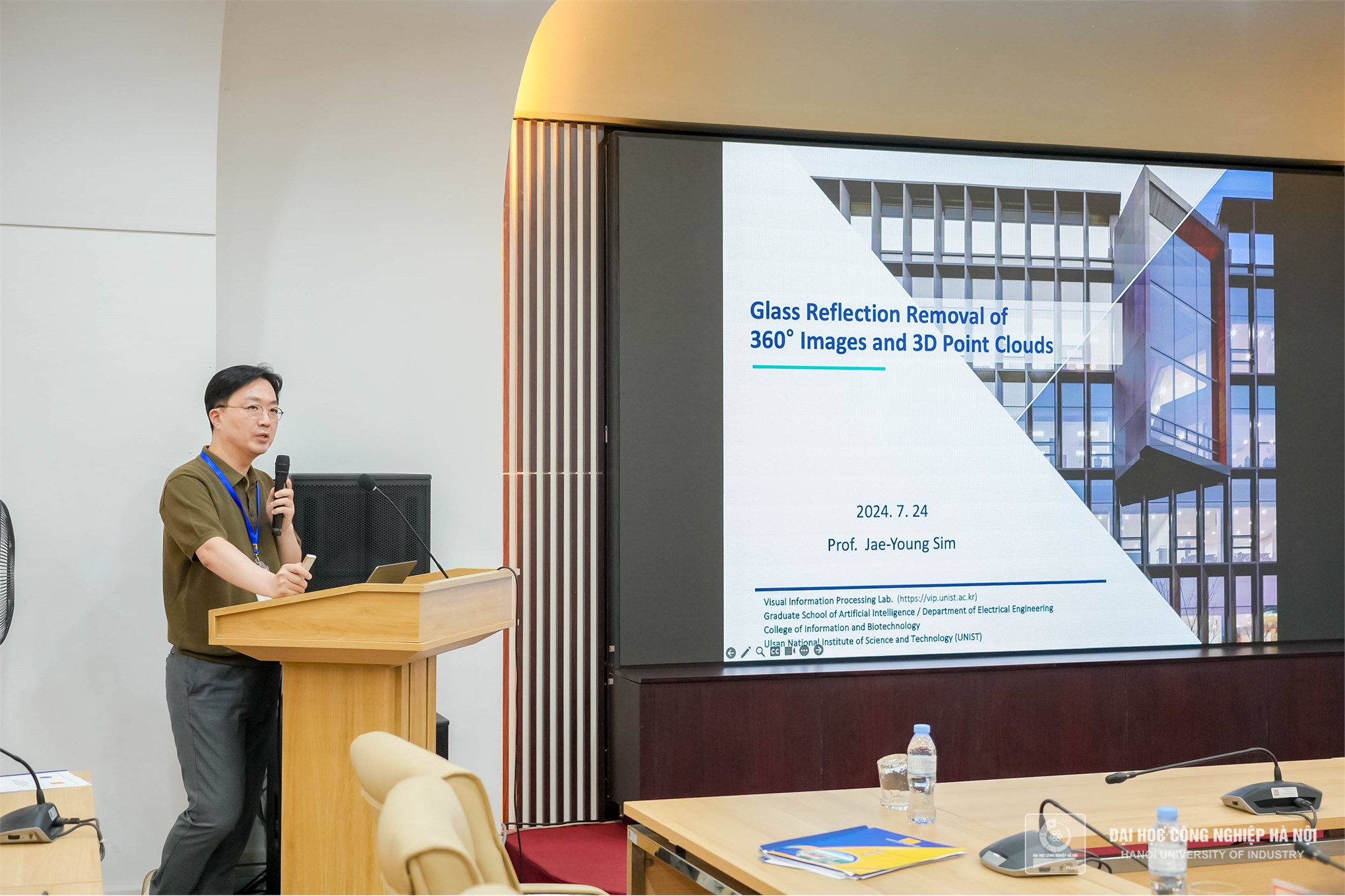 Giáo sư Jae-Young Sim,Viện Khoa học và Công nghệ Quốc gia Ulsan, Hàn Quốc trình bày báo cáo “Glass reflection removal of 360° images and 3D point clouds”