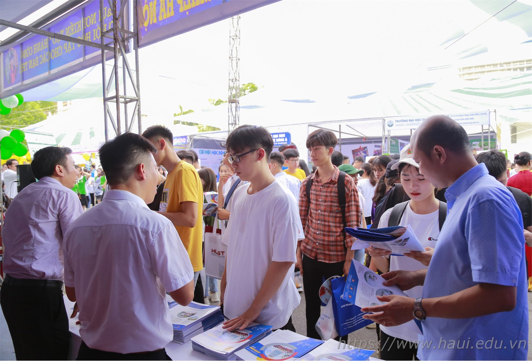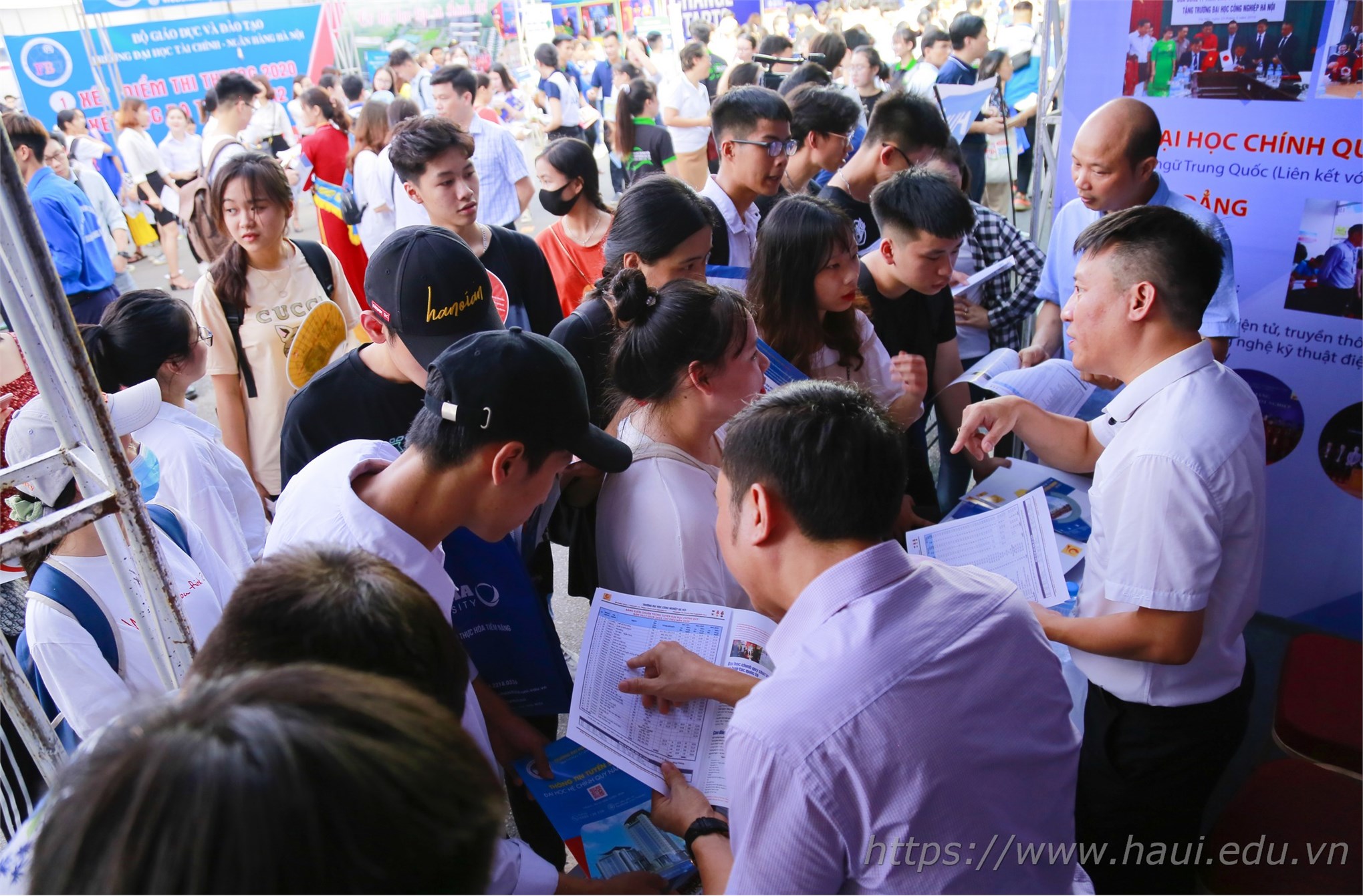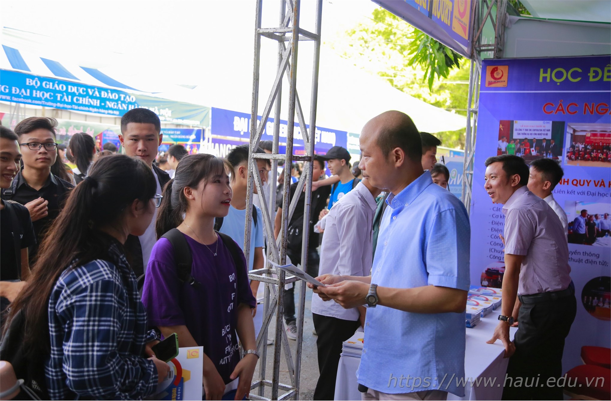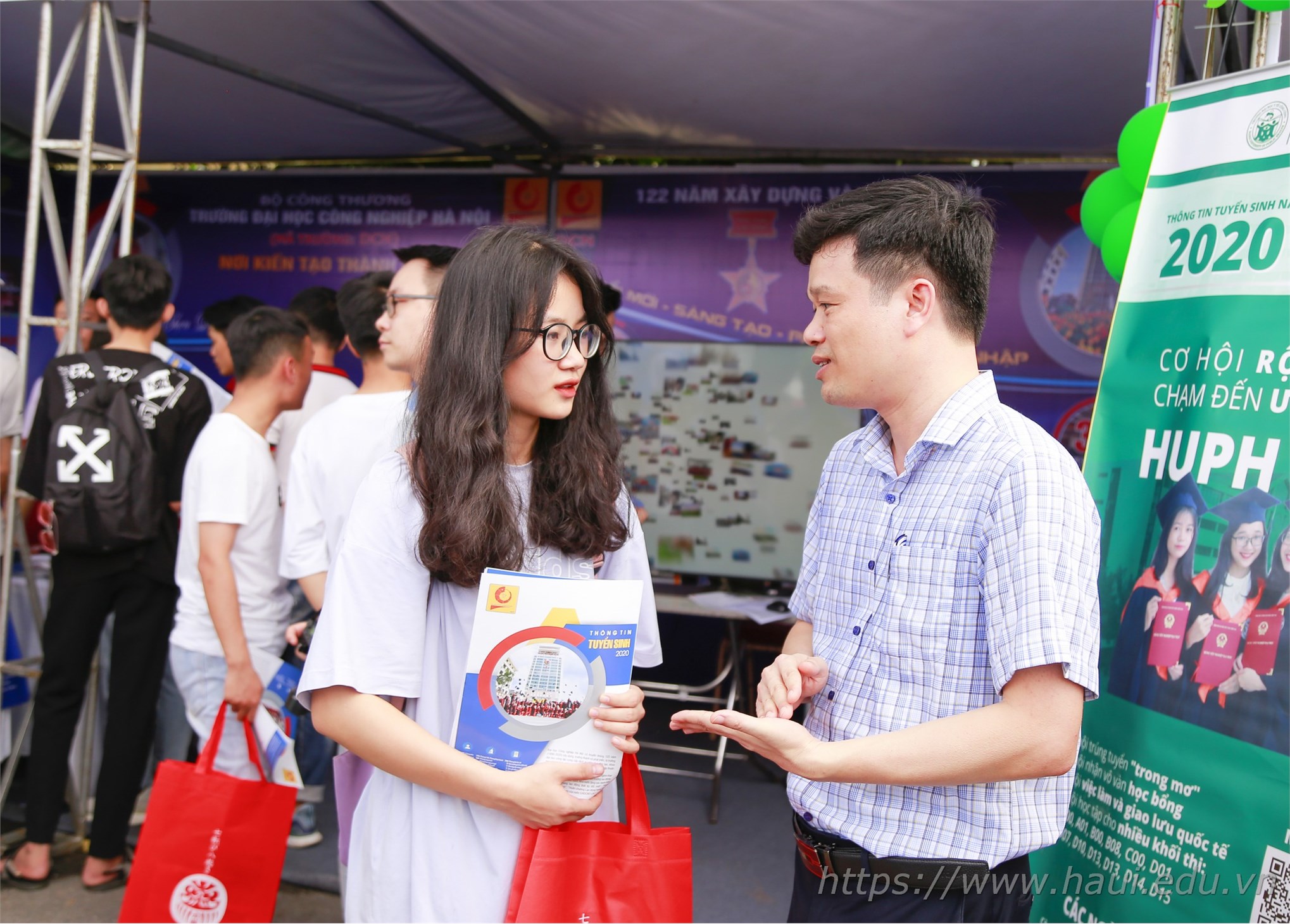 Ngay trong buổi sáng của Ngày hội, gian tư vấn của Đại học Công nghiệp Hà Nội đã thu hút hàng nghìn học sinh, phụ huynh đến tìm hiểu thông tin, TS. Kiều Xuân Thực - Trưởng phòng Đào tạo nhà trường trực tiếp tư vấn tuyển sinh cho biết: năm nay, do ảnh hưởng dịch Covid, ngày hội tư vấn tuyển sinh và hướng nghiệp tổ chức muộn hơn mọi năm, thời tiết rất nóng bức nhưng học sinh và phụ huynh vẫn tham gia rất đông. Tại đây, các bậc phụ huynh và các bạn học sinh đã được các chuyên gia, giảng viên có kinh nghiệm của Trường tư vấn nhiệt tình, trách nhiệm, cung cấp đầy đủ thông tin về ngành học, chỉ tiêu tuyển sinh, chính sách ưu tiên trong tuyển sinh, quy định đăng ký xét tuyển, tuyển thẳng, phương thức xét tuyển, các thông tin về học phí, học bổng … của Nhà trường trong năm 2020.