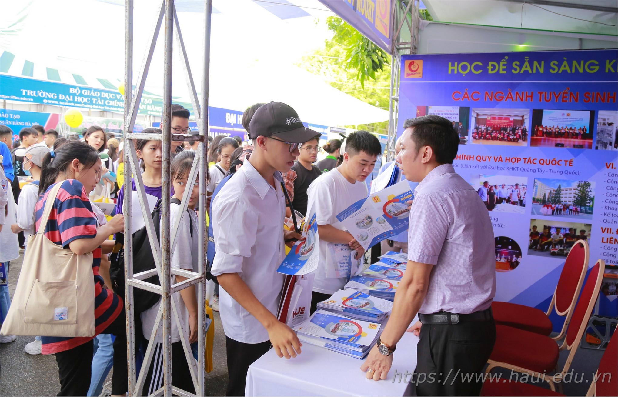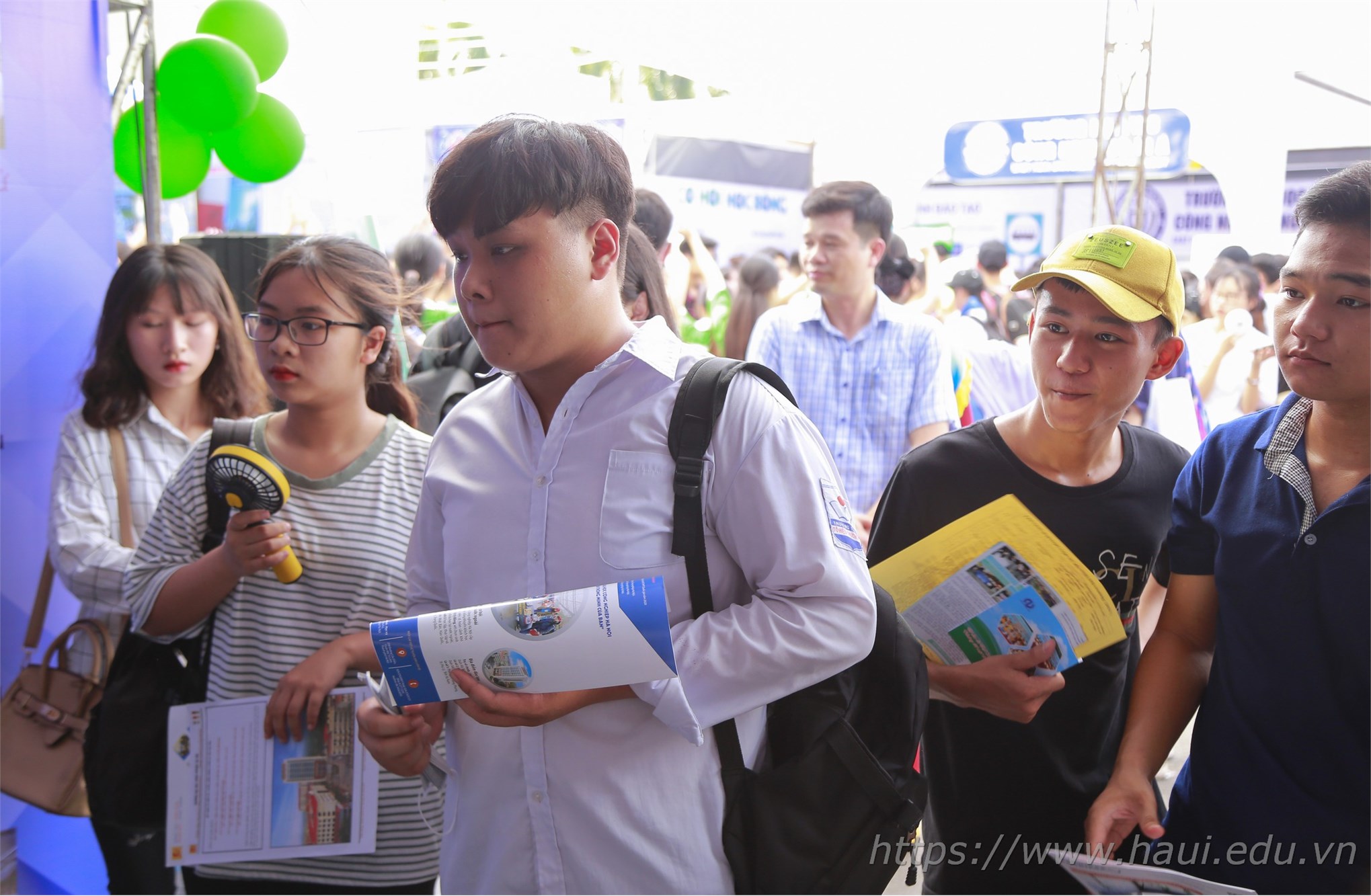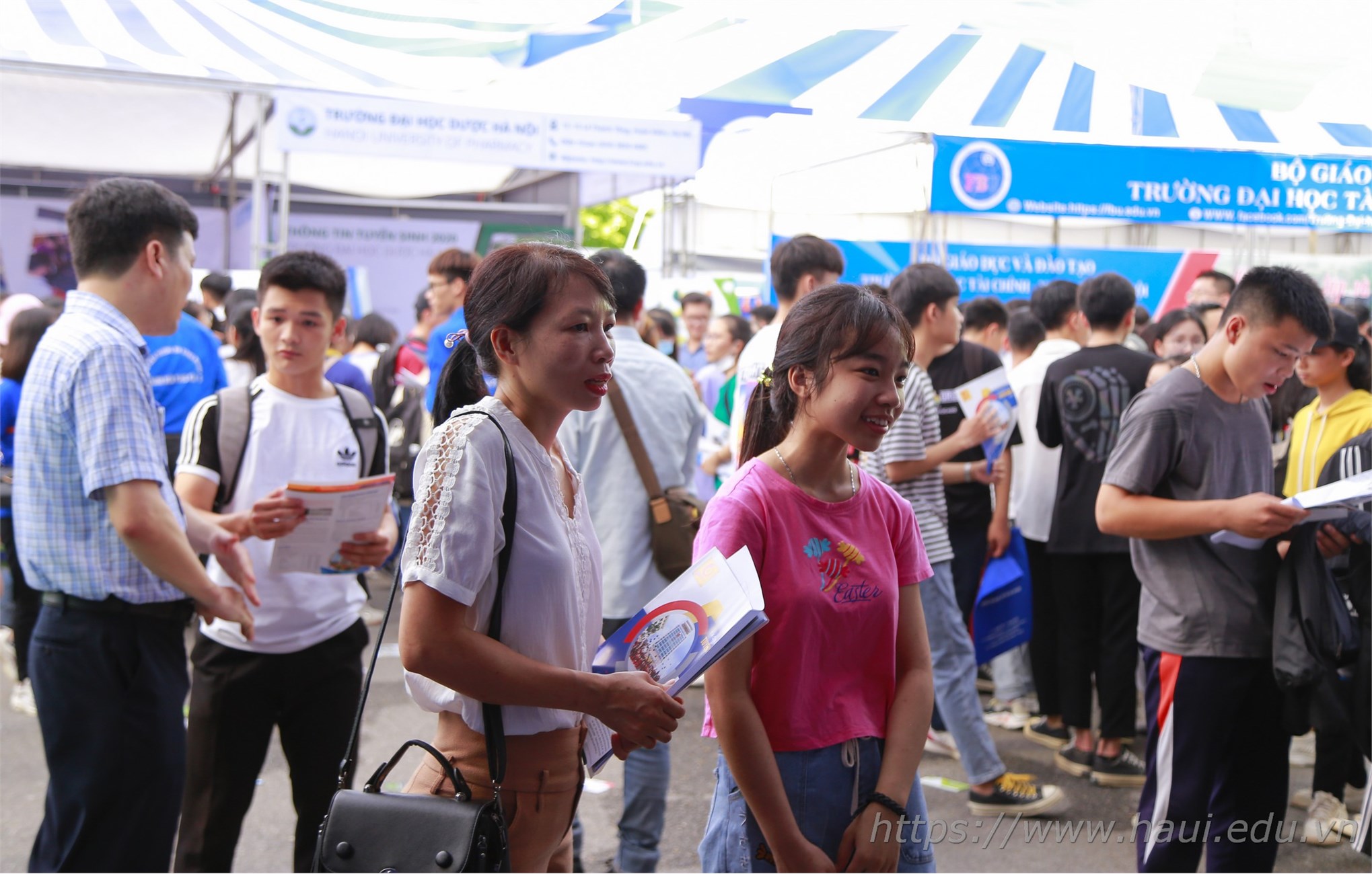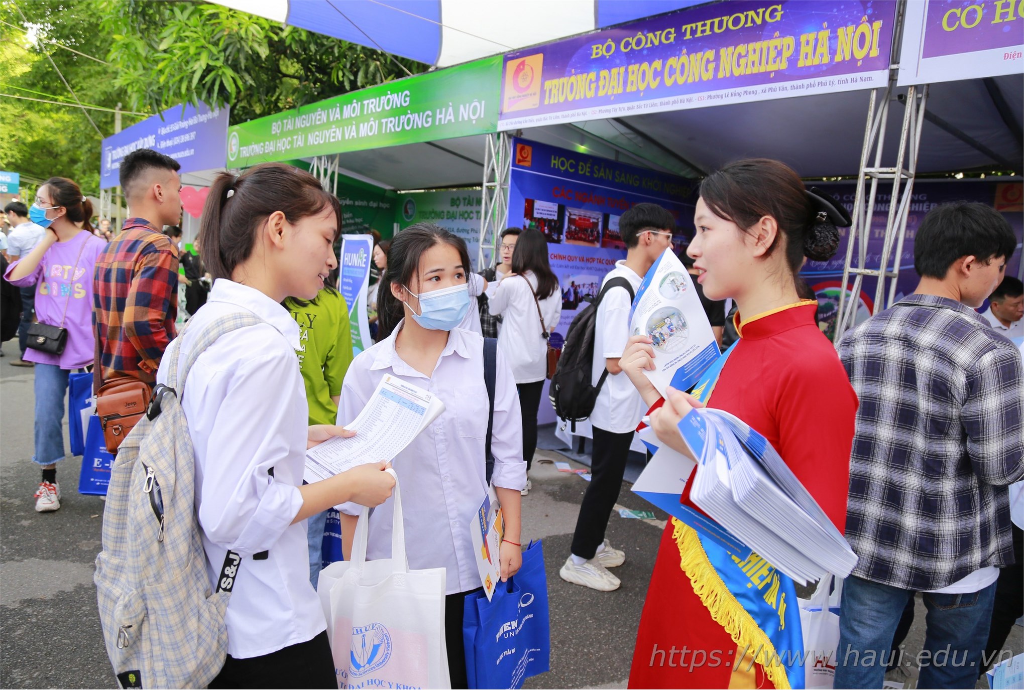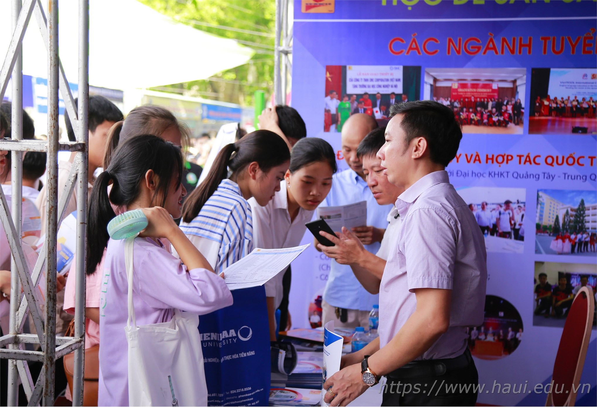 Ngay trong buổi sáng của Ngày hội, gian tư vấn của Đại học Công nghiệp Hà Nội đã thu hút hàng nghìn học sinh, phụ huynh đến tìm hiểu thông tin, TS. Kiều Xuân Thực - Trưởng phòng Đào tạo nhà trường trực tiếp tư vấn tuyển sinh cho biết: năm nay, do ảnh hưởng dịch Covid, ngày hội tư vấn tuyển sinh và hướng nghiệp tổ chức muộn hơn mọi năm, thời tiết rất nóng bức nhưng học sinh và phụ huynh vẫn tham gia rất đông. Tại đây, các bậc phụ huynh và các bạn học sinh đã được các chuyên gia, giảng viên có kinh nghiệm của Trường tư vấn nhiệt tình, trách nhiệm, cung cấp đầy đủ thông tin về ngành học, chỉ tiêu tuyển sinh, chính sách ưu tiên trong tuyển sinh, quy định đăng ký xét tuyển, tuyển thẳng, phương thức xét tuyển, các thông tin về học phí, học bổng … của Nhà trường trong năm 2020.