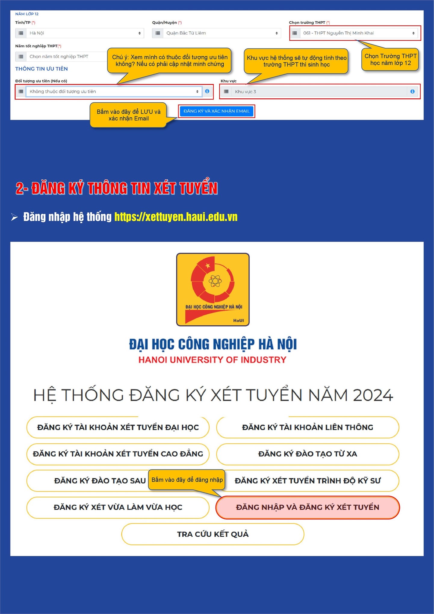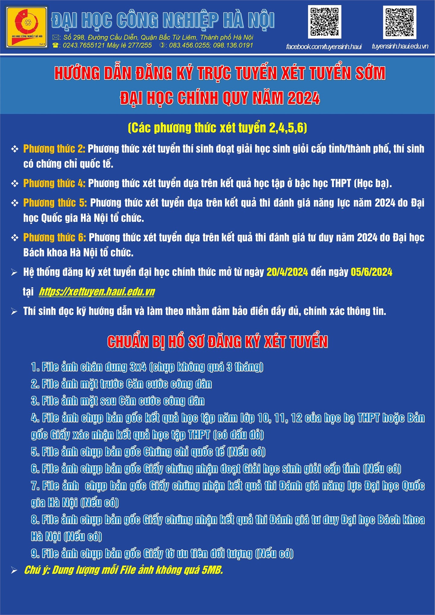 Đại học Công nghiệp Hà Nội hướng dẫn thí sinh đăng ký xét tuyển sớm Đại học chính quy năm 2024.