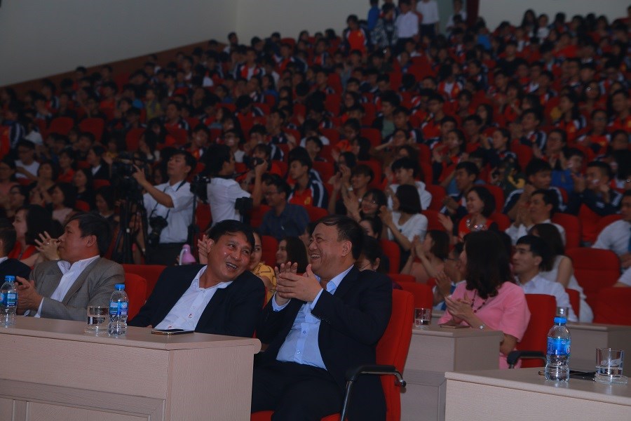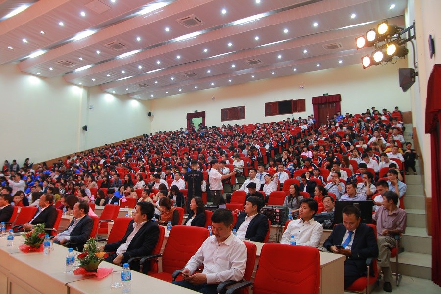 Hội trường C19 chật cứng chỗ ngồi, đông đảo cán bộ, giảng viên, sinh viên đến cổ vũ và thưởng thức nghệ thuật