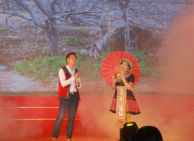 + Khoa Quản lý kinh doanh, Phòng Tài chính kế toán tiết mục “Điệu ví dặm là em” do Nguyễn Thị Tuyết biểu diễn.