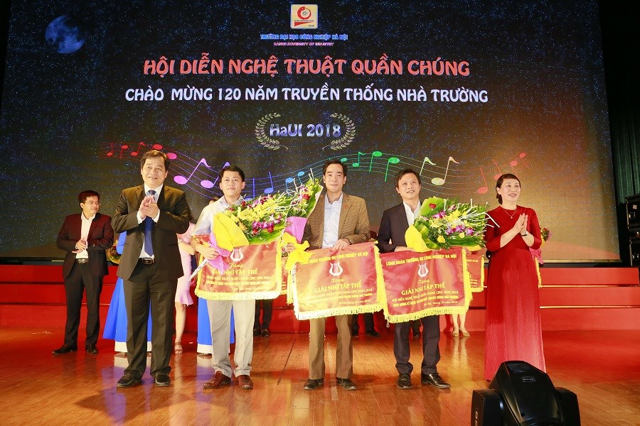 Giải Nhì tập thể được trao cho: Khoa Du lich, TT Đào tạo Quốc tế, Phòng HTQT, Viện CN HaUI, Phòng KHCN; Khoa Ngoại ngữ và Phòng Quản trị; Khoa Điện, Phòng Thanh tra Giáo dục